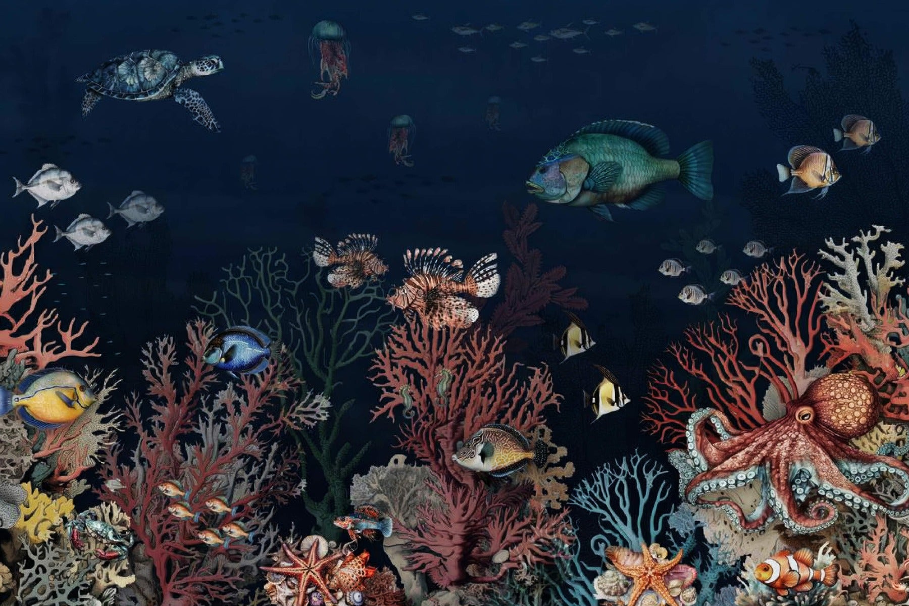 Dive into the deep blues of the ocean wallpaper, coral marvels wall mural, where nature's underwater palette bursts forth in vibrant hues and intricate patterns. Envision the silent dance of marine life amidst the coral's embrace, captured in an awe-inspiring display for your wall. Each glance reveals a hidden creature, from the cautious clownfish to the majestic sea turtle, gliding through this aquatic tapestry. Perfect for the avid explorer or the dreamy sea lover, this mural beckons viewers on a visual journey through the ocean's depths. Bring the mysteries of the ocean's heart right into your living quarters, without the need for tanks or diving gear. The coral marvels wall mural is more than a mere adornment it's a portal to the wonders beneath the waves.