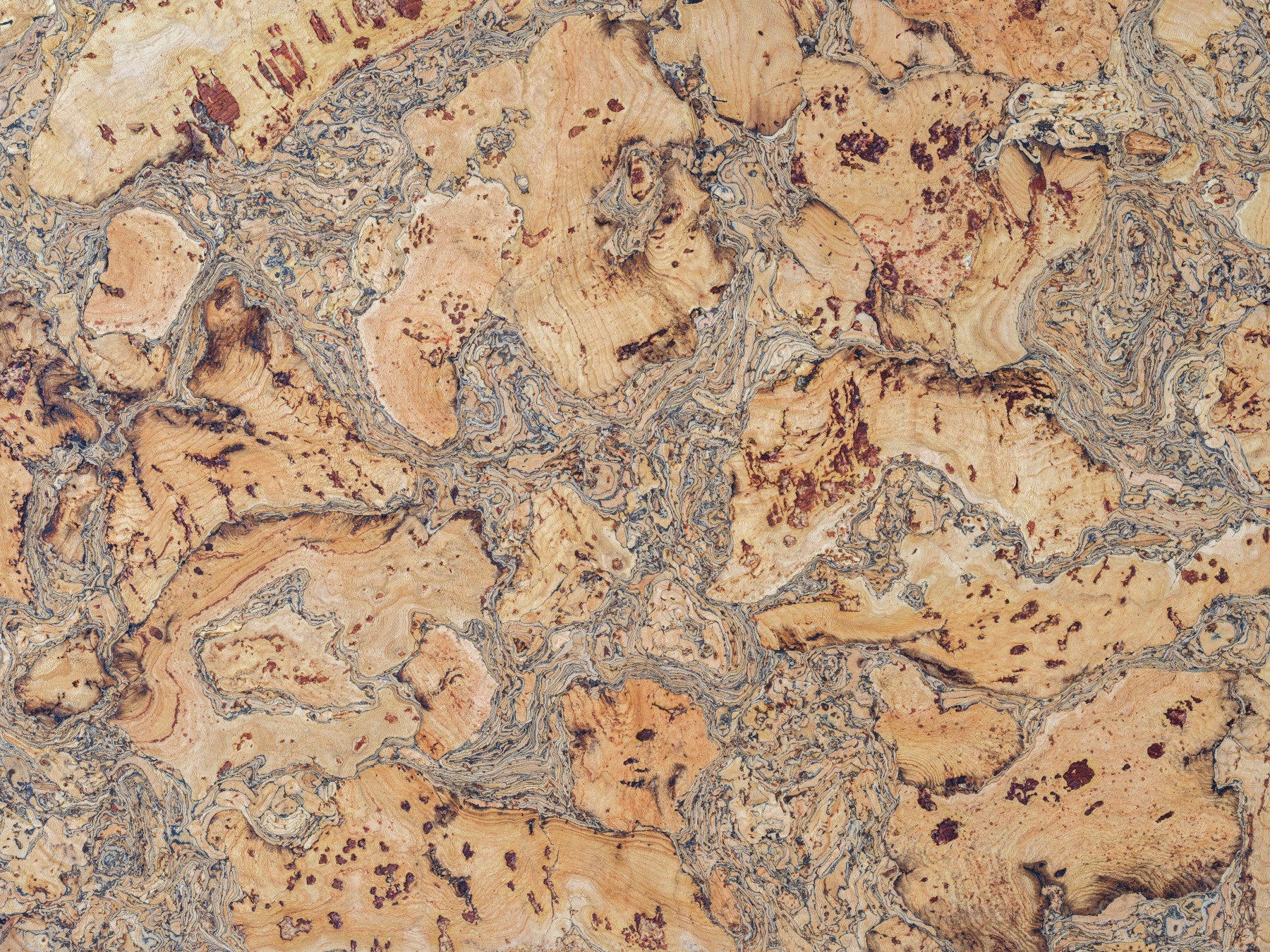This wallpaper showcases the intricate beauty of cork's natural texture. The warm beige and brown tones create a serene and earthy atmosphere, while the swirling, almost abstract patterns add a touch of unique artistic flair. This design is perfect for those who appreciate natural materials and organic aesthetics. Its calming and sophisticated style works well in various settings, from bedrooms and living rooms to home offices, bringing a quiet elegance to any space. The subtle color variations and captivating details offer an element of visual intrigue, creating a captivating and harmonious backdrop for your home.