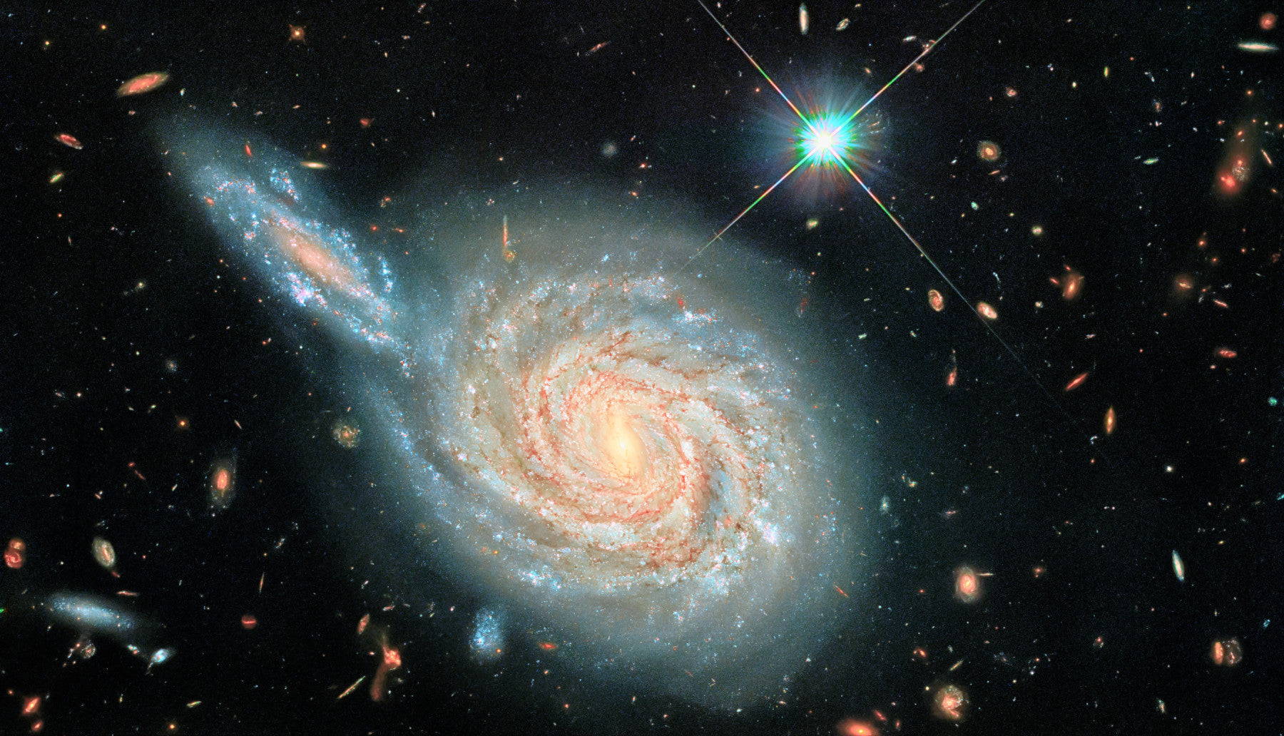 A wall mural of a cosmic landscape.