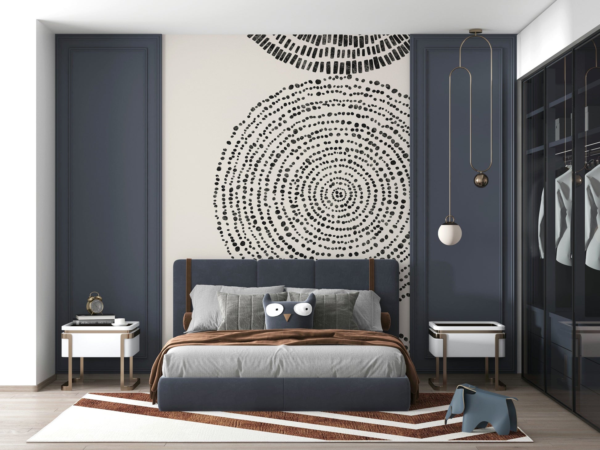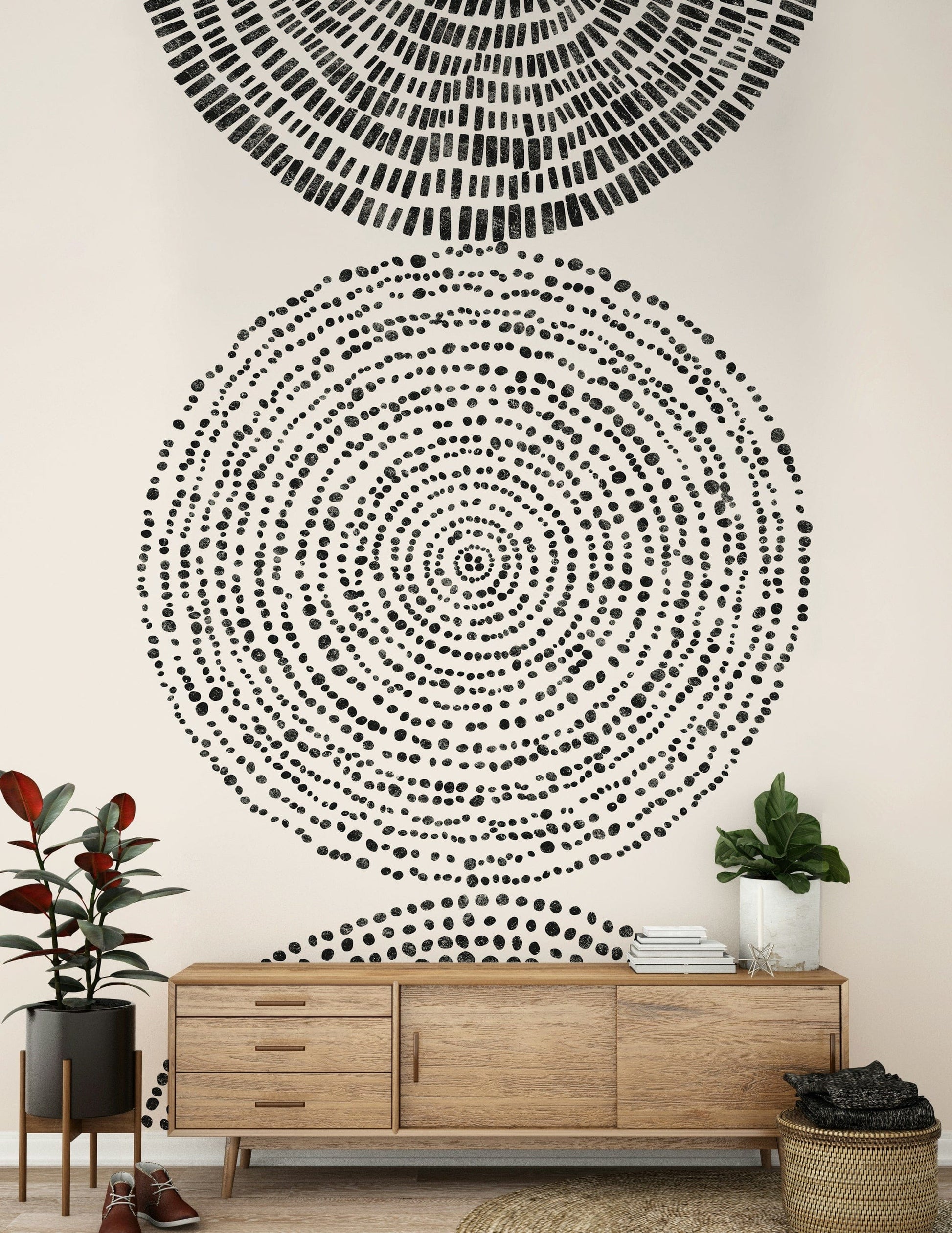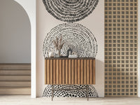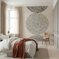 Transform your walls with the captivating 'Cosmic Echoes' wallpaper for walls. This striking design features a series of concentric shapes, each rendered in varying densities of black speckles and strokes against a creamy beige backdrop. Its minimalist aesthetic and monochromatic palette create a sophisticated, modern look that complements a range of interior styles. Introduce depth and visual interest to your living room, bedroom, or hallway. The design's serene and abstract nature makes it an ideal choice for creating a calming, yet stylish focal point, enhancing the overall ambiance of your space with its unique charm.