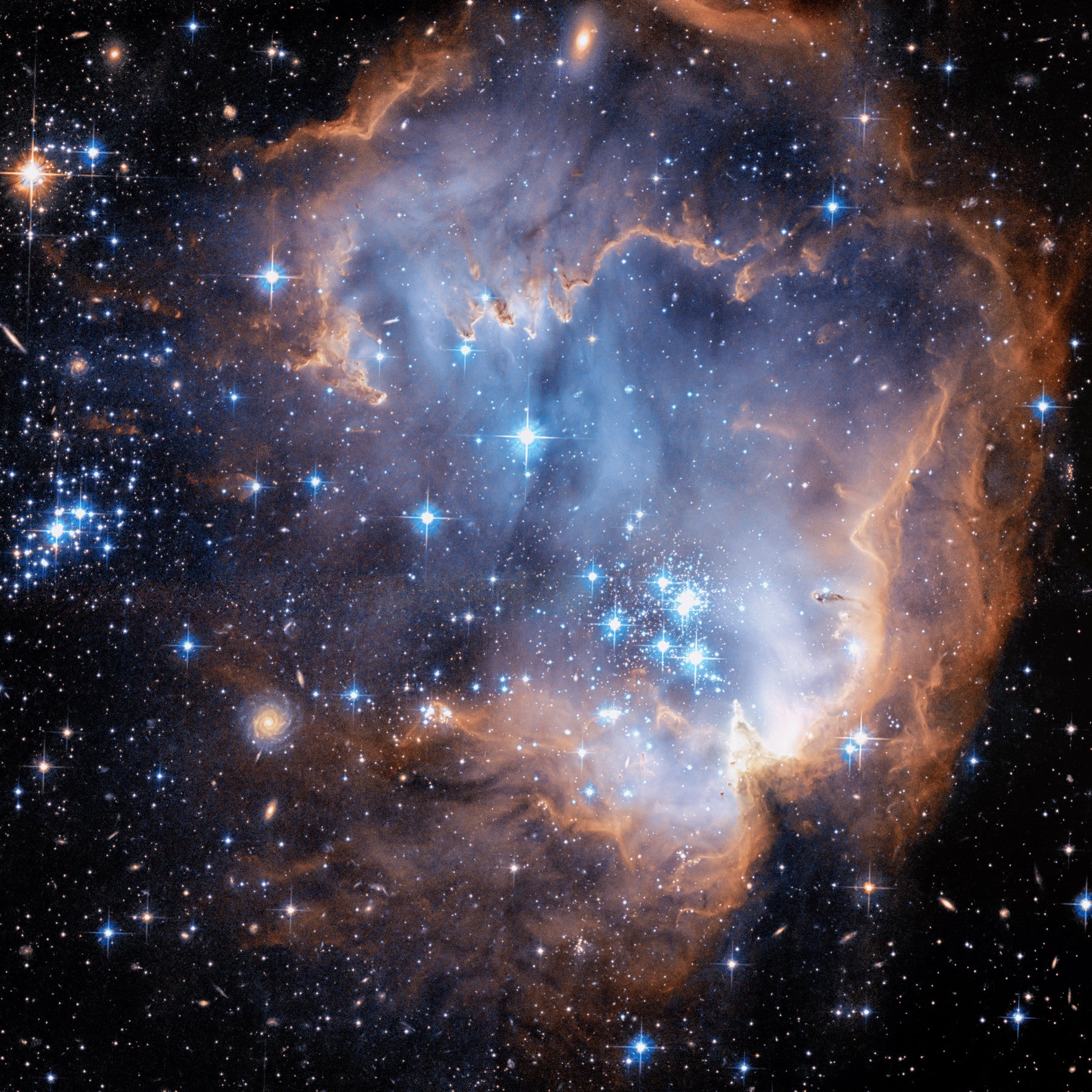 Swirling clouds of gas and dust are visible in vibrant colors like pink, purple, and blue.