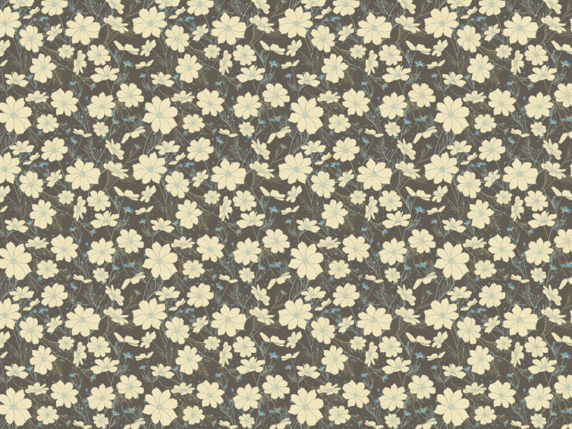 Stylish gray wallpaper with soft cosmos flower illustrations.