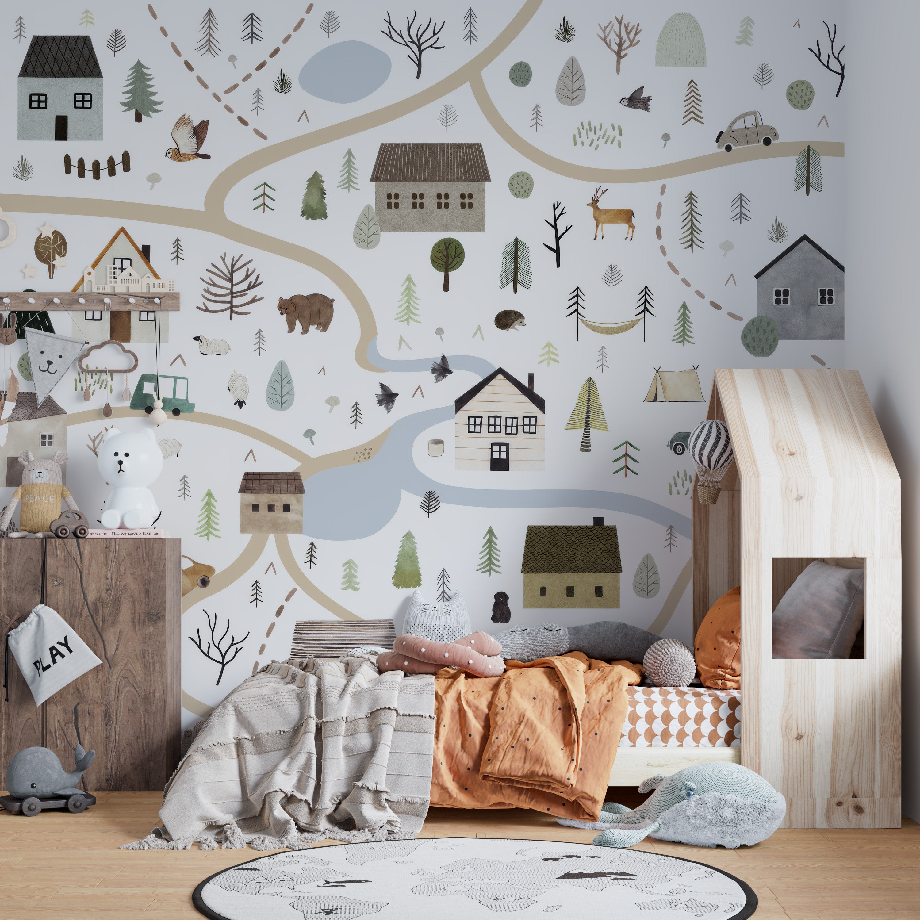 Discover serenity in simplicity with our countryside charm wall mural. This exquisite white wallpaper offers a subtle yet detailed portrayal of rural life. Each glance brings a fresh appreciation for the gentle houses, winding roads, and friendly fauna that populate this tranquil village tableau. Perfect for creating a calming backdrop in your home, this design promises a peaceful atmosphere in a sophisticated package.