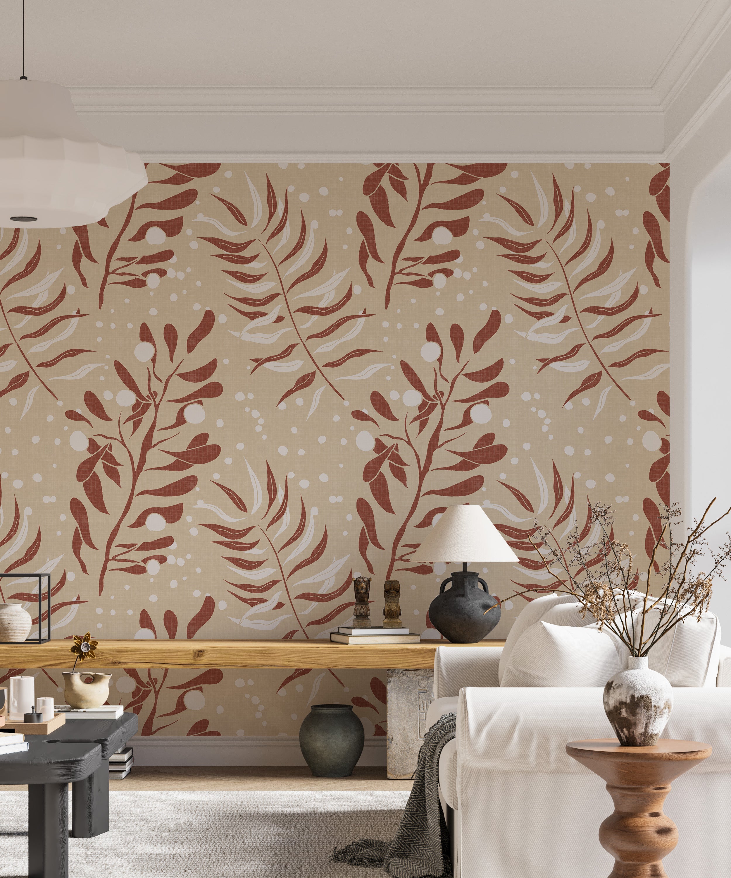 Neutral tropical wallpaper for relaxed modern interiors