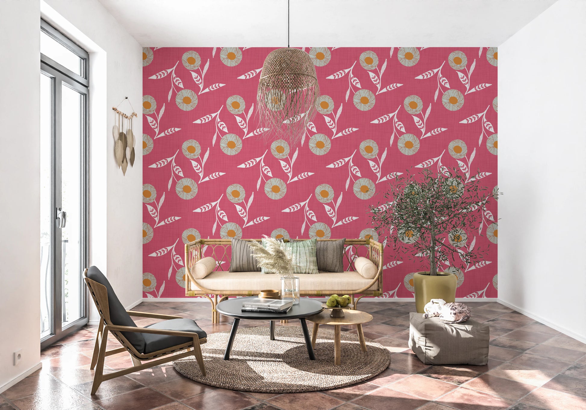 Cozy Scandi Flower Rose Clay - Craft Botanical Wallpaper⁠