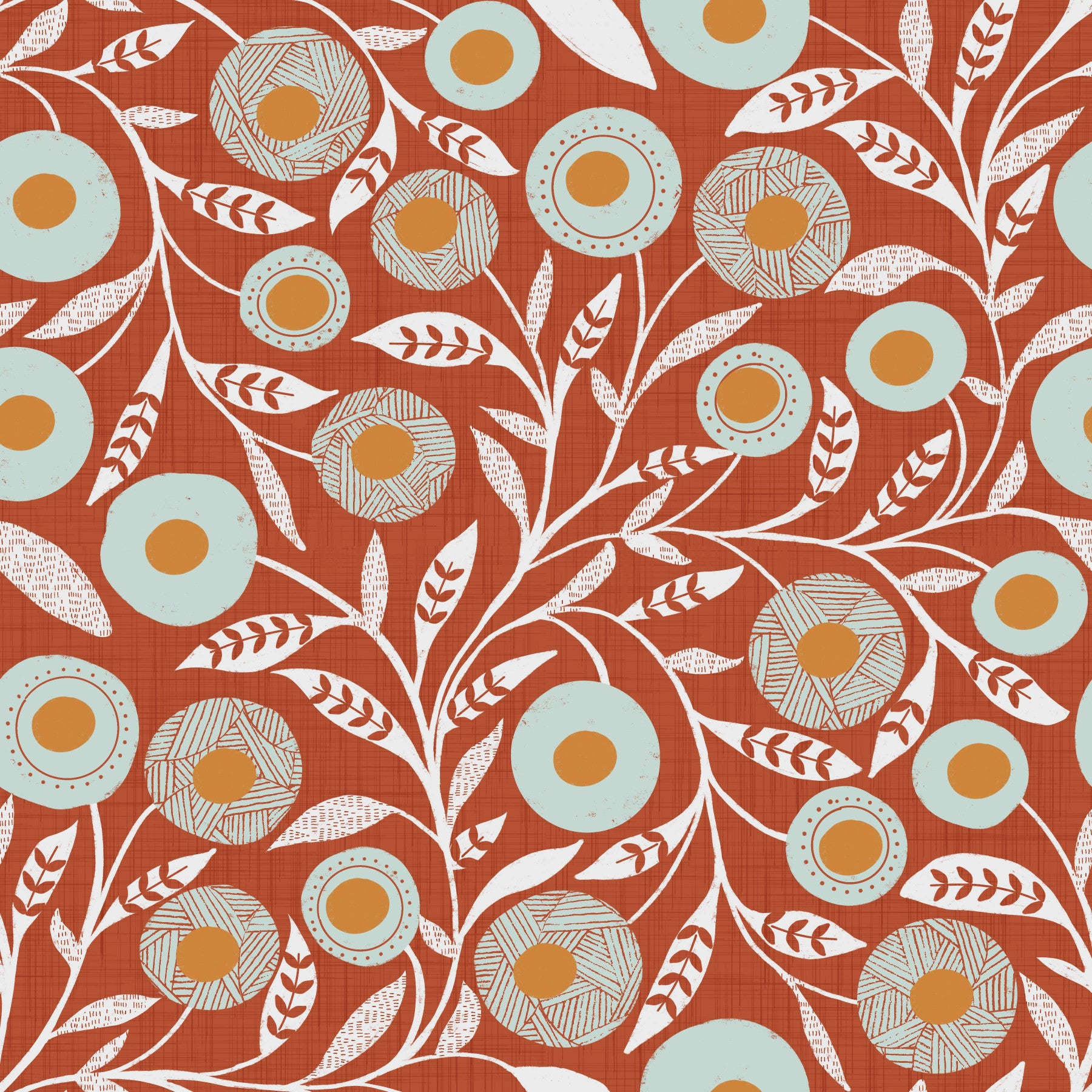 Cozy Scandi Folk Floral Burnt Terracotta - Craft Botanical Wallpaper⁠