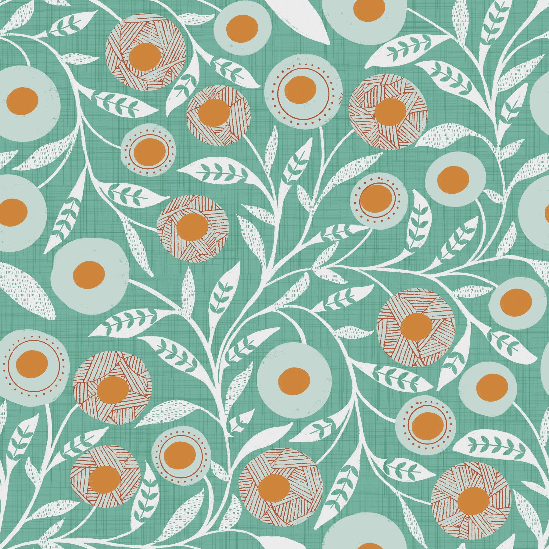 Cozy Scandi Folk Floral Sage Mint - Craft Botanical Wallpaper⁠