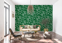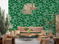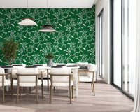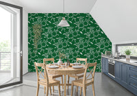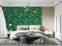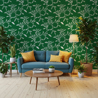 Embrace the serene beauty of nature with this 'Cozy Scandi Folk Leaf Vine Forest Green' wall covering. Its deep forest green backdrop evokes a sense of calm and tranquillity, reminiscent of a lush woodland haven. Delicate, hand-crafted style white leaf vines meander across the surface, adding a touch of whimsical charm and effortless elegance. The design blends a minimalist Scandi aesthetic with folk-inspired details, creating a warm and inviting atmosphere for any room. Let this captivating wall décor transform your space into a cosy retreat, where nature's gentle embrace meets sophisticated style. Perfect for adding a touch of organic beauty to your home. This nature-inspired piece will enrich your living room or bedroom with lightheartedness.