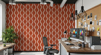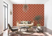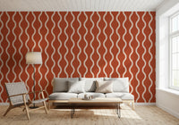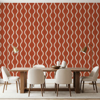 Infuse your space with the warmth and charm of our 'Cozy Scandi Folk Wavy Stripe' wallcovering. A burnt terracotta backdrop provides a grounding, earthy feel, reminiscent of hand-dyed fabrics and sun-baked landscapes. The creamy, wavy stripes dance across the surface, creating a sense of movement and playful sophistication. The subtle, handcrafted texture adds depth and visual interest, invoking a sense of artisanal quality. Perfect for creating a cosy and inviting atmosphere, this design is ideal for spaces where you want to embrace a relaxed, yet stylish aesthetic. It brings a touch of rustic elegance, blending seamlessly into both modern and traditional interiors, offering a unique blend of comfort and refined design.