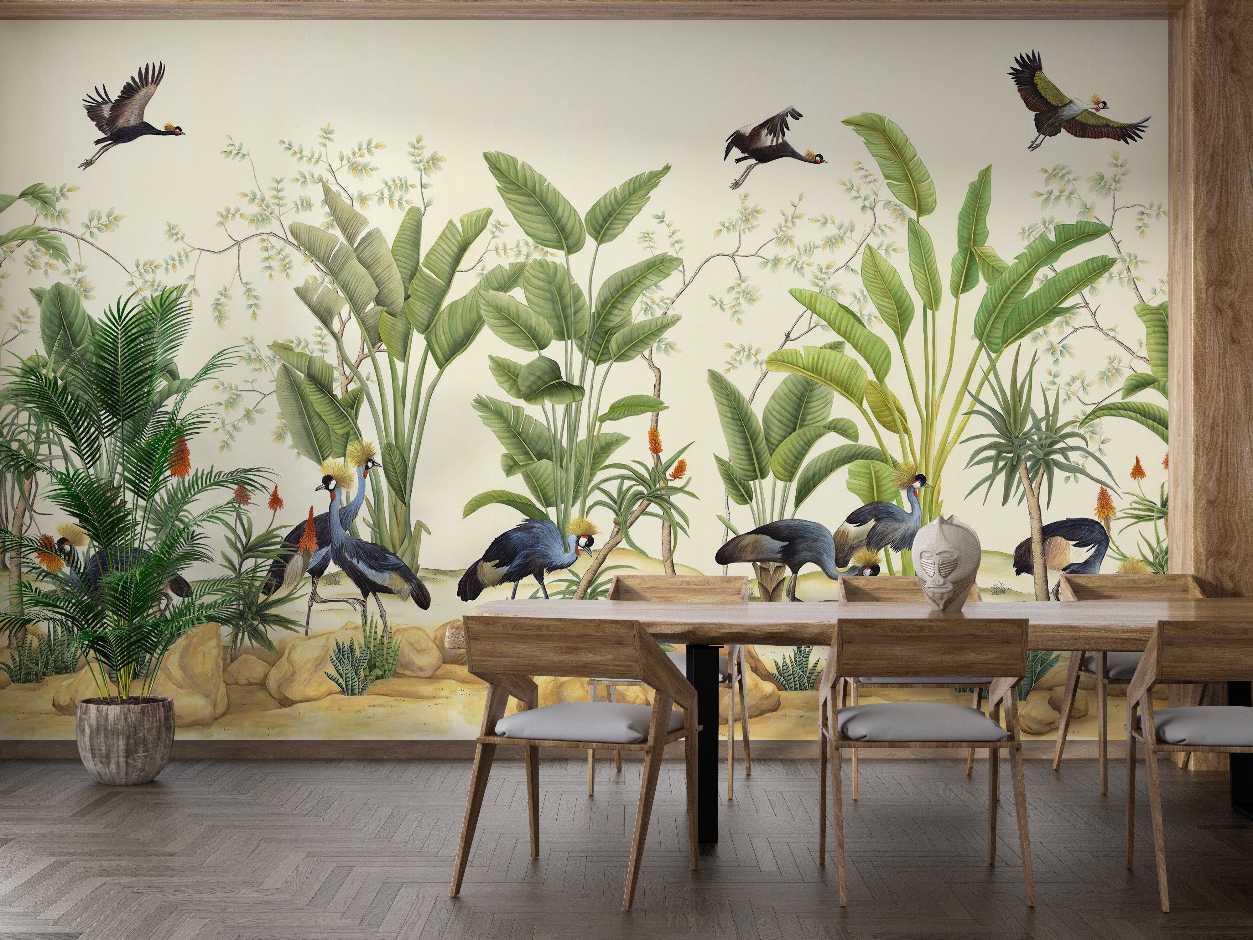 Tropical Grey Crane Wallpaper Murals - Giffywalls
