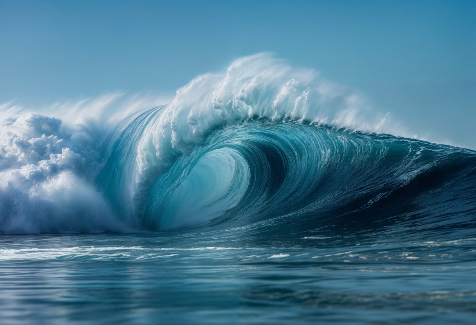 Transform your space with the energy of the ocean with this impressive wallpaper for walls. This stunning design showcases a powerful wave breaking, its colours ranging from light blues to deeper teals, and accented by the white foam. This image adds depth and movement to any room. Ideal for a home office, bathroom, or bedroom, this wallpaper brings a unique coastal touch. It creates a relaxing environment and complements various interior styles, from modern to traditional, adding a sense of dynamic tranquility.