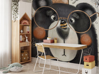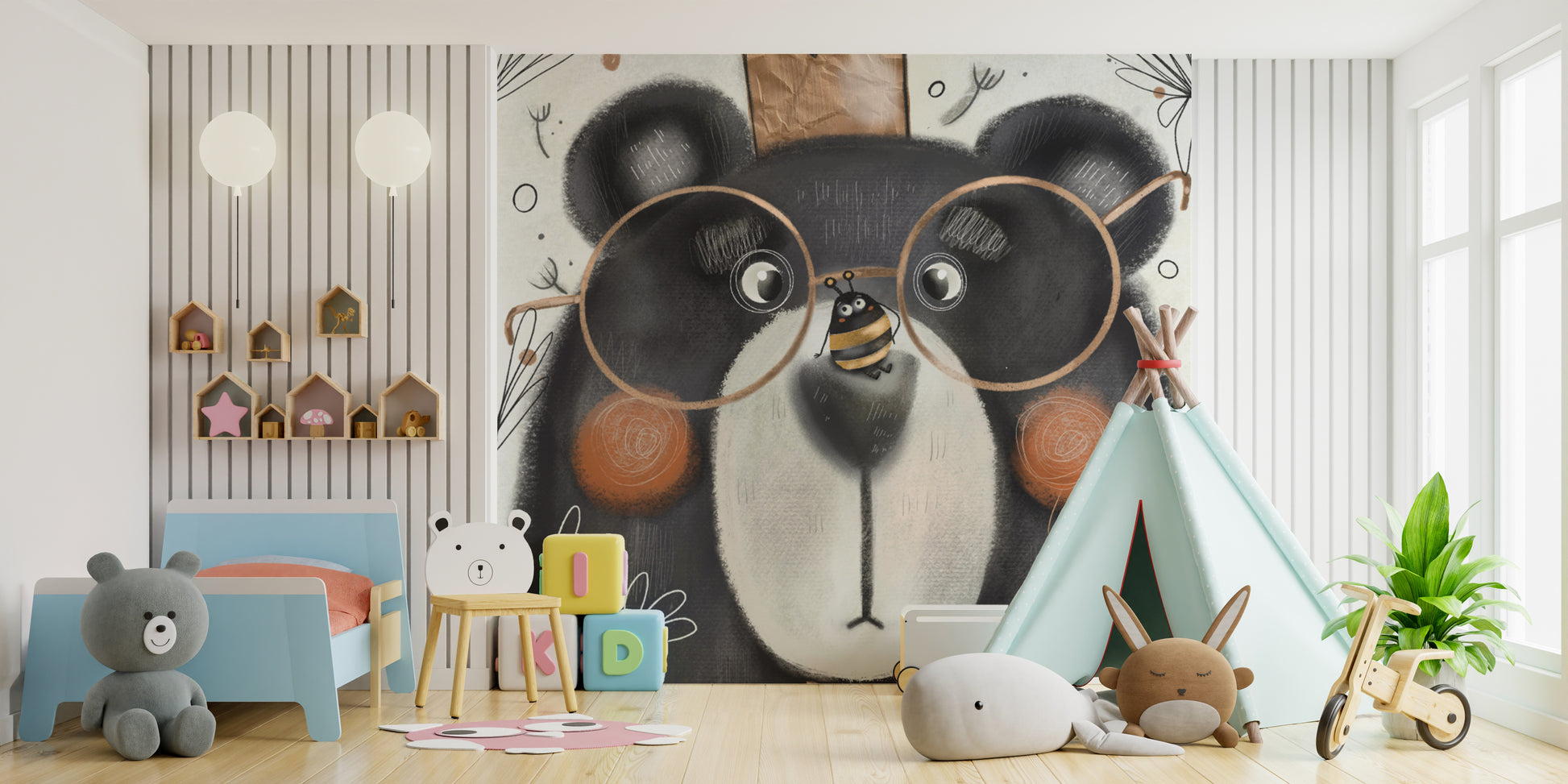 Creative Bear Face Wallpaper Mural brings a playful, funny ambiance to your house. It gives a bear with oversized glasses, a crown, and a playful bee on its nose in this wallpaper mural. Your room will have fun and become lighter by these murals since they can add a light-hearted atmosphere to the most glamorous spaces. You can use them for a little girl's bedroom decoration or a cheerful living room. Shop now and get this unique, cute mural sent free shipping to your door, adding a creative touch to your home!
