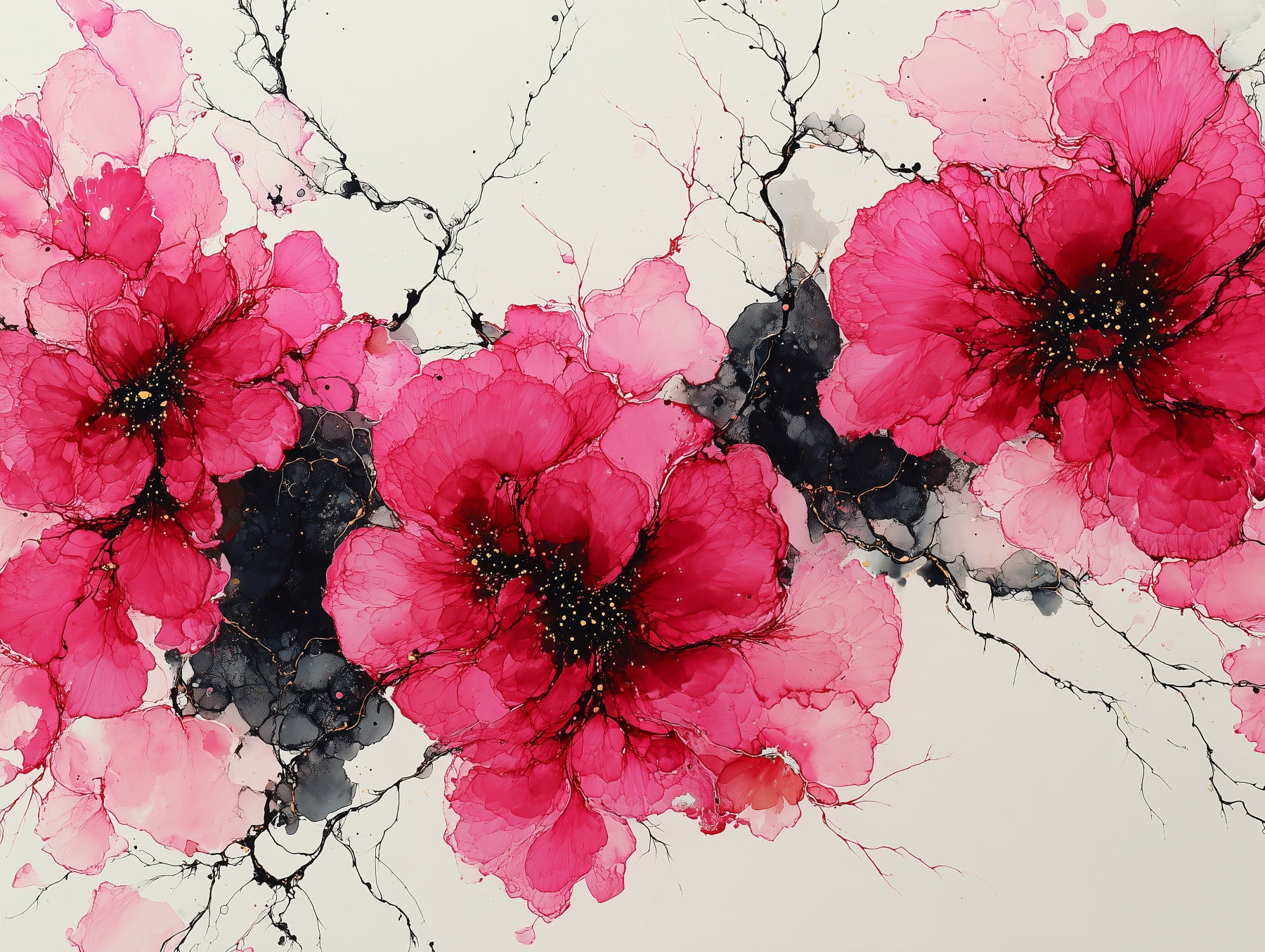Introduce a burst of modern artistry with this stunning floral wallpaper. The design features vibrant crimson flowers contrasted with delicate black ink-like details, offering a contemporary feel. This statement wallpaper for walls brings a touch of drama and elegance to any space. Use it to enhance a living room, add a striking backdrop to a dining room, or create a serene atmosphere in a bedroom. Its bold design complements both minimalist and maximalist interior styles.
