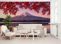 Elevate your interior design with this captivating wallpaper for walls, showcasing the iconic Mount Fuji bathed in the soft glow of dawn. The striking contrast between the snow-capped peak and the vibrant crimson foliage offers a visually stunning experience. The gentle ripples on the water's surface create an immersive feel, adding depth to any room. This unique design works perfectly in bedrooms, meditation spaces, or even entryways, inviting a sense of calm and sophistication. Introduce a touch of nature's splendour and let this landscape become a seamless extension of your personal style, enhancing the overall ambience of your home.