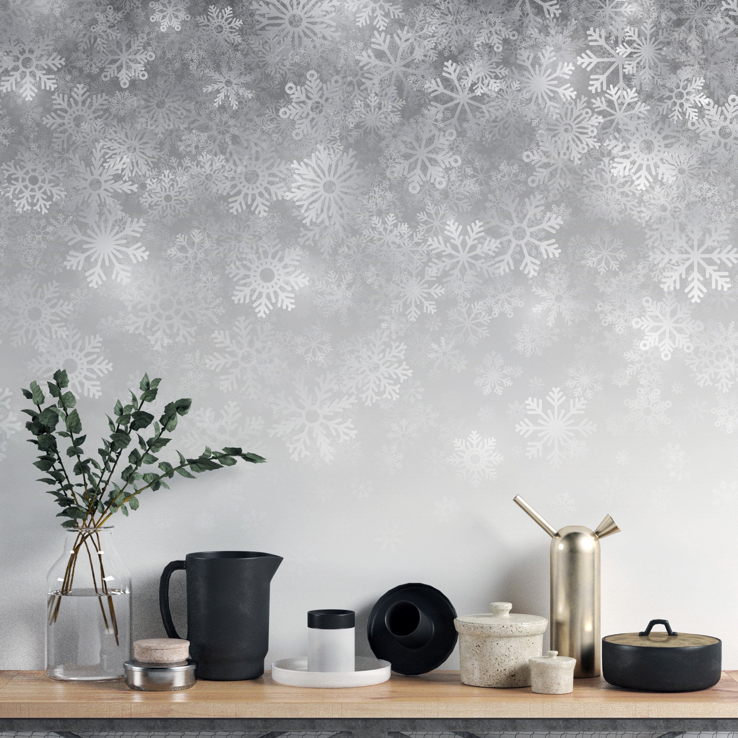 Elevate your home decor with our Crystalline Snowflake Wallpaper Mural, a stunning design that brings the magic of winter into your space. This black and white snowflake wallpaper offers a frosty charm, perfect for adding a modern winter touch to any room. The abstract design features crystal clear snowflakes, evoking the tranquility of a winter wonderland snowflake wall mural, ideal for bedrooms or living rooms. The frosted snowflake wallpaper effect with a fading grey background transitioning into ivory creates a sense of calm and romance. Whether you're looking to refresh your space with a cozy vibe or preparing your home for the holiday season, this icy snowflake wall mural is a perfect choice.