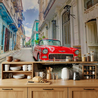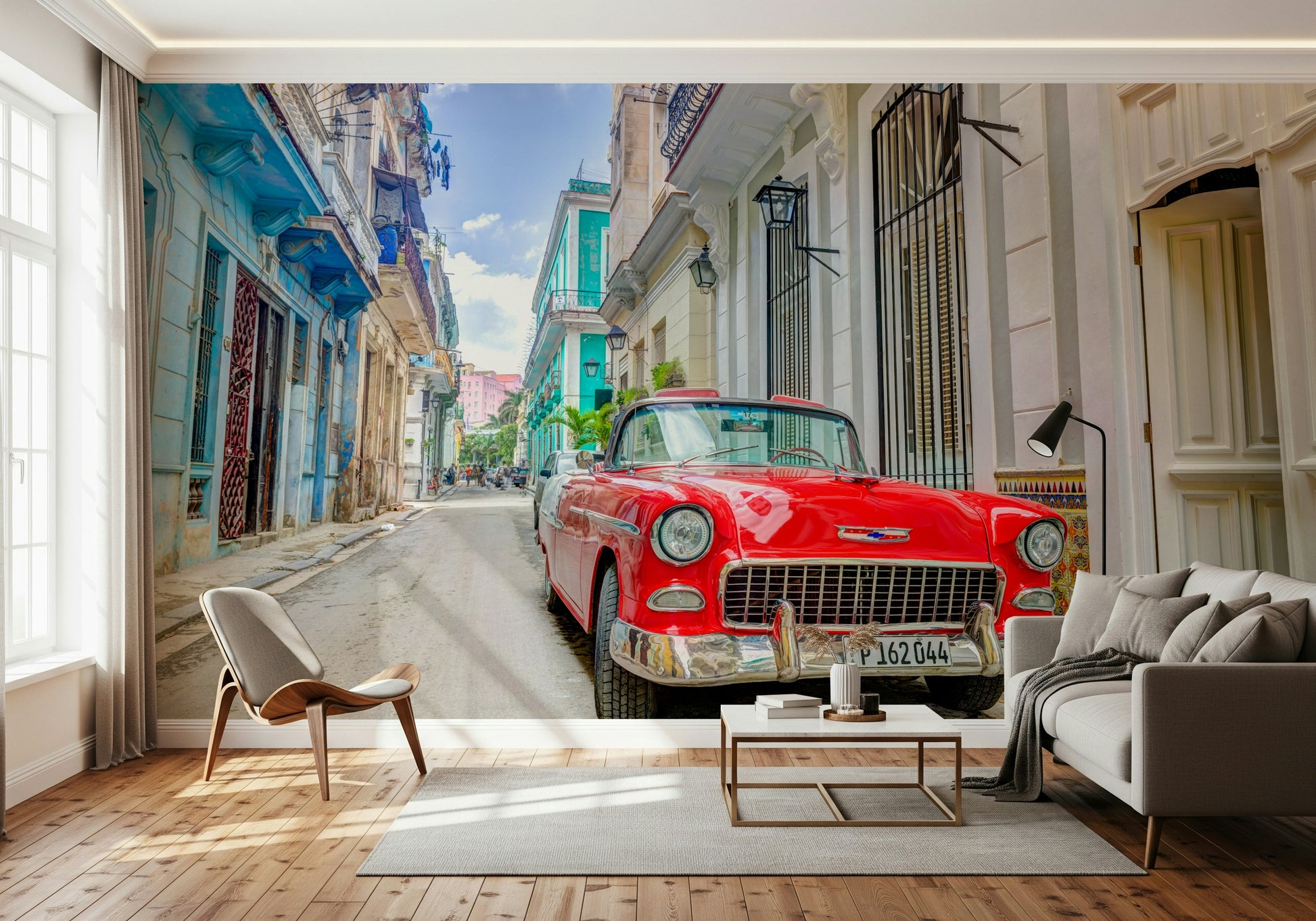 Classic car in Havana city, Cuba. Immerse yourself in the vibrant soul of Havana with this captivating composition. Evoking the charm and timeless allure of Cuba, this piece transports you to a sun-drenched street scene where history and culture intertwine. A cherry-red classic car, a symbol of Cuban resilience and ingenuity, takes centre stage, its gleaming paintwork reflecting the surrounding architecture. Weathered yet proud buildings with pastel facades create a stunning backdrop, whispering tales of a bygone era. The interplay of colours, from the turquoise accents to the warm hues of the aged buildings, adds depth and character. This work captures the essence of Cuba's enduring spirit, offering a unique and evocative addition to any space. It's more than just decor; it's a window to a world rich in passion, history, and undeniable beauty.