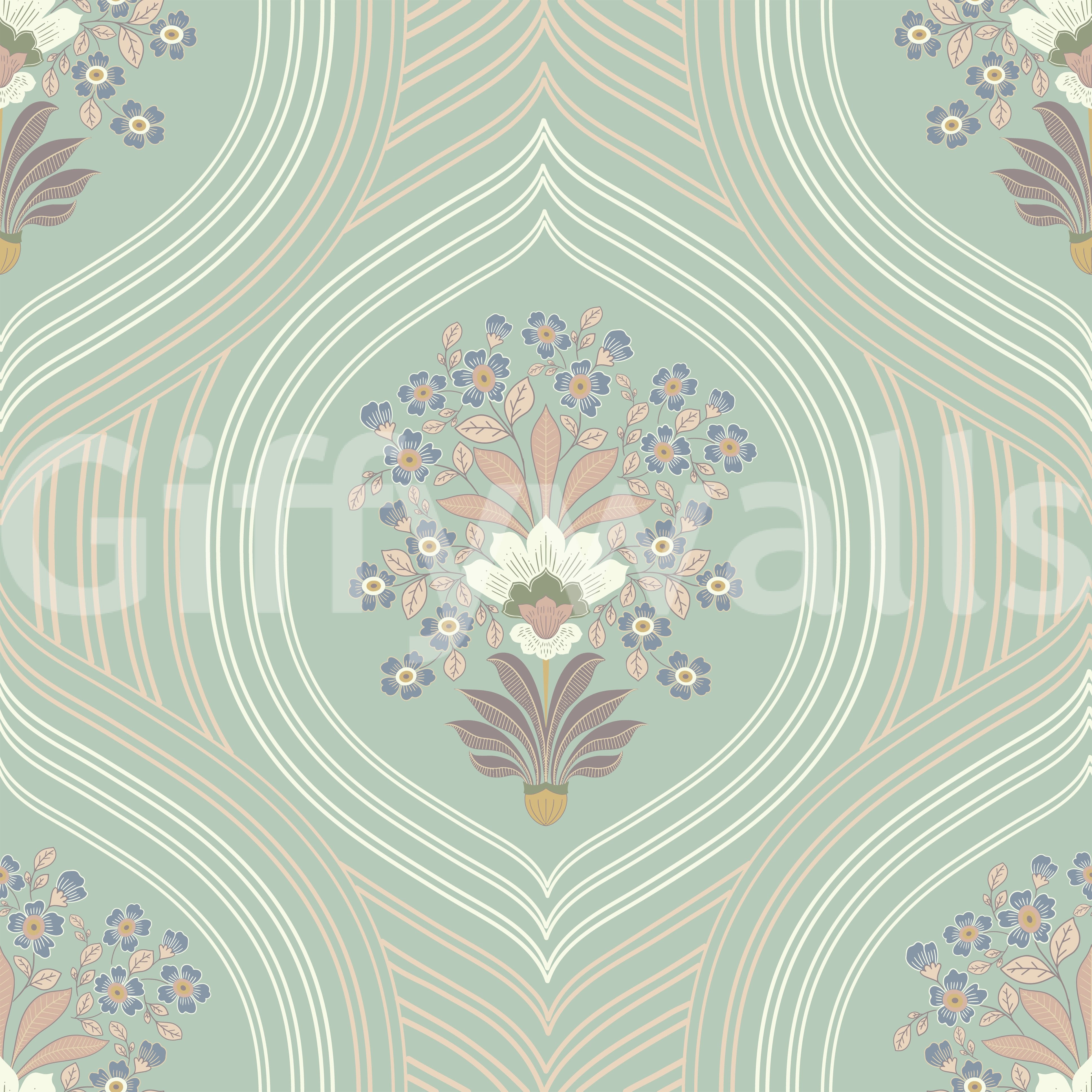 Experience the beauty of subtle elegance with this wallpaper featuring a captivating interplay of curved lines and delicate floral designs. The soft, muted color palette of sage green and blush tones creates a calming and refined atmosphere. The meticulously crafted floral motifs add a touch of vintage charm, while the rhythmic flow of the lines provides a sense of visual harmony and balance. Perfect for those seeking a sophisticated and tranquil aesthetic, this wallpaper is ideal for bedrooms, living rooms, or any space needing a touch of calming sophistication. It adds a subtle yet impactful design statement to your home decor.