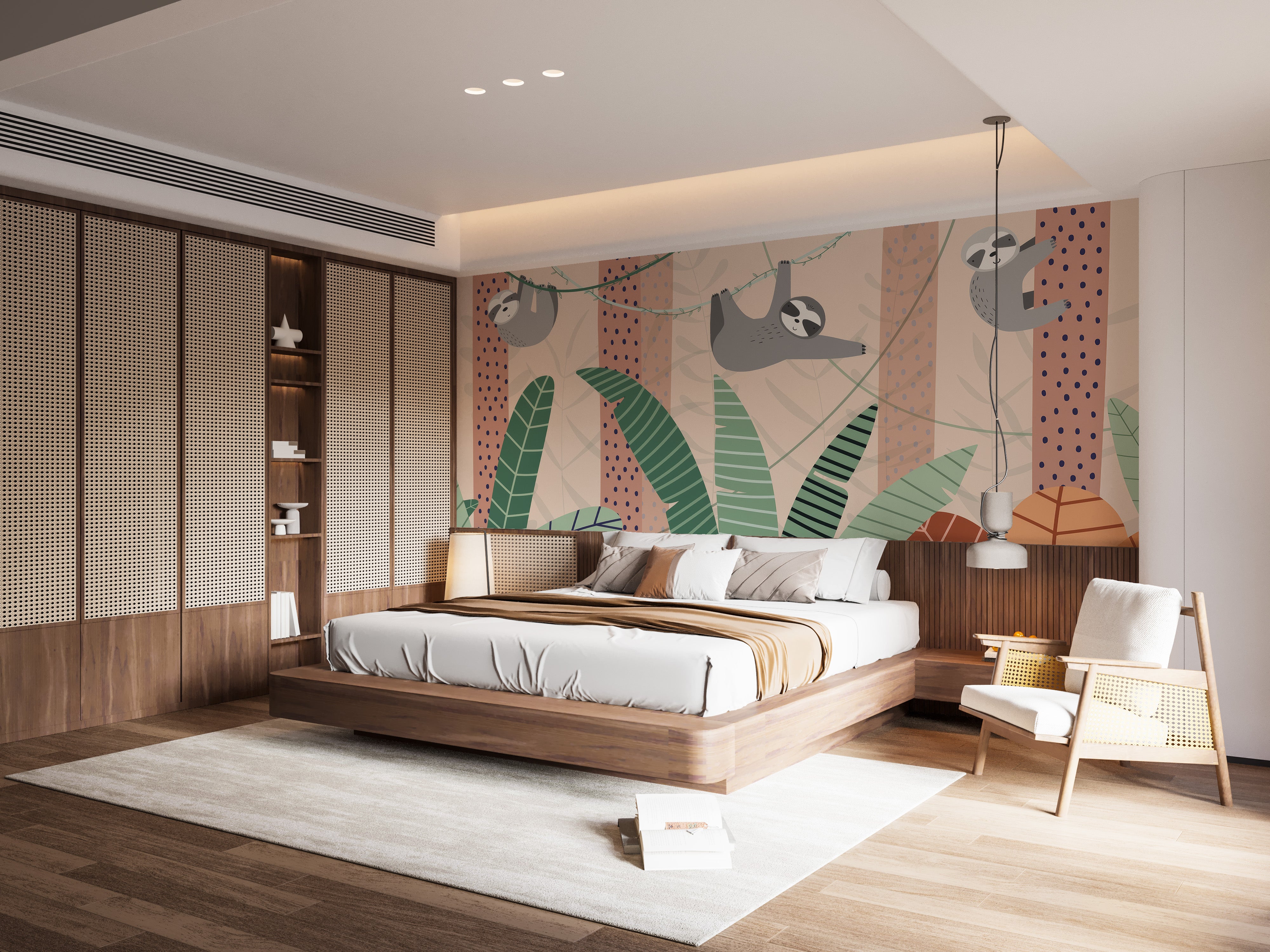 Adorable cartoon sloth wall mural design