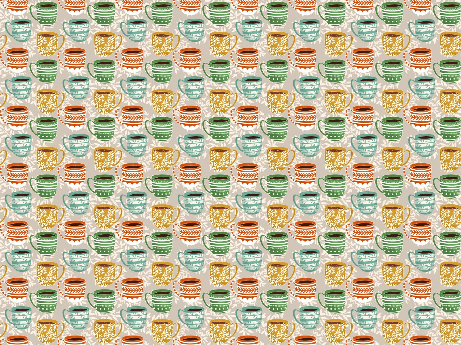 Grey coffee-themed wallpaper with mugs