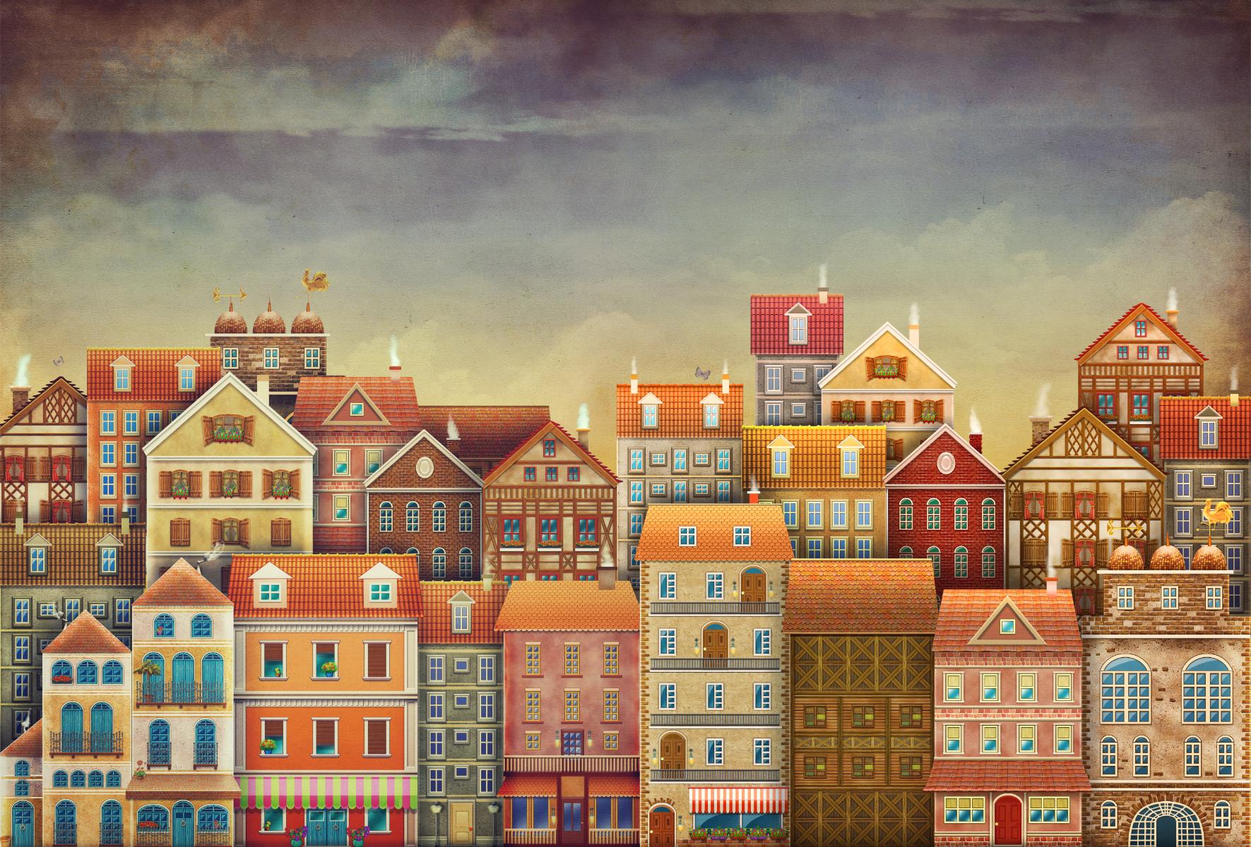 Cute Dark Color Houses Wallpaper Mural - Giffywalls