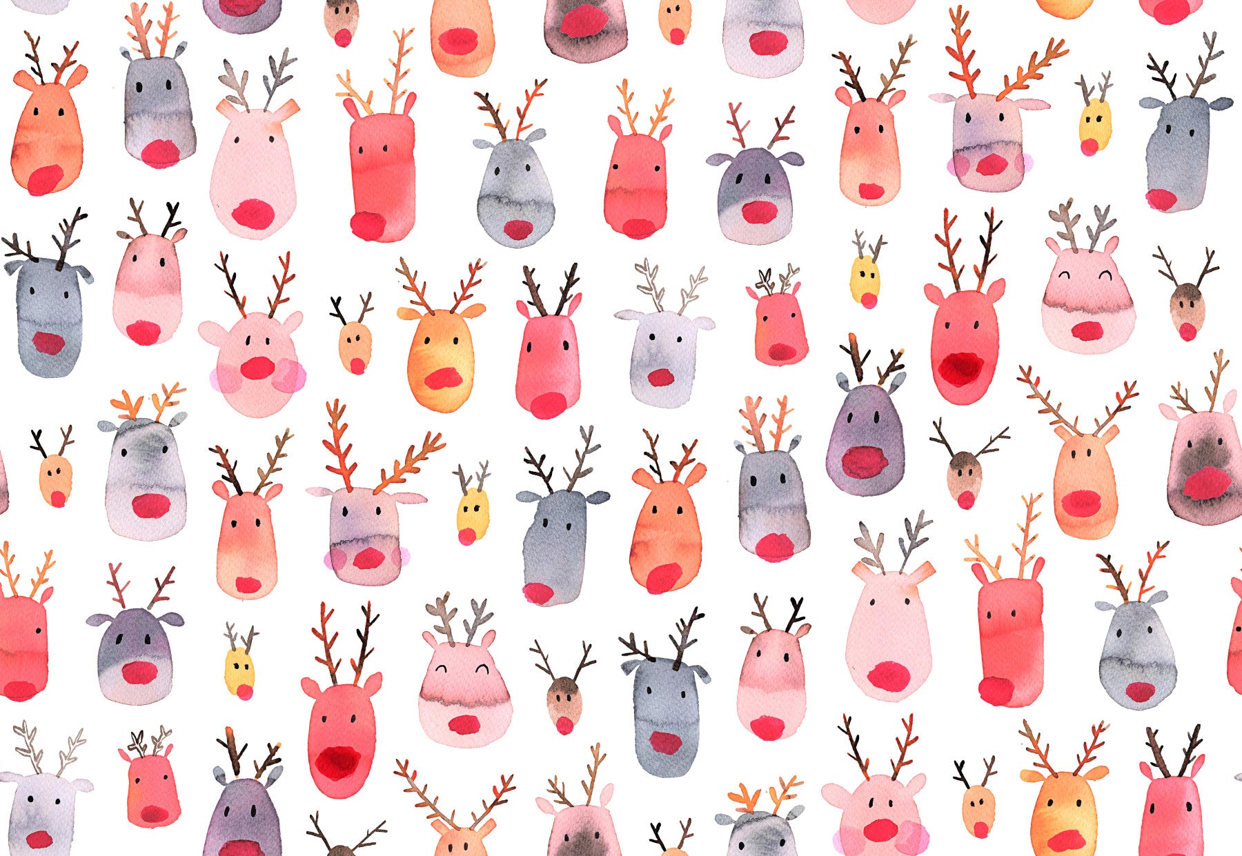 Delight in this charming wallpaper featuring an adorable collection of reindeer kids! Each little reindeer boasts a unique personality, rendered in soft watercolor washes of pink, orange, and grey. Their rosy red noses and delicately drawn antlers add to their irresistible cuteness. This whimsical pattern is perfect for adding a touch of festive cheer to any device, creating a warm and joyful atmosphere. The simple, clean white background allows the charming reindeer faces to take center stage, making it a delightful and versatile choice for your digital wallpaper.