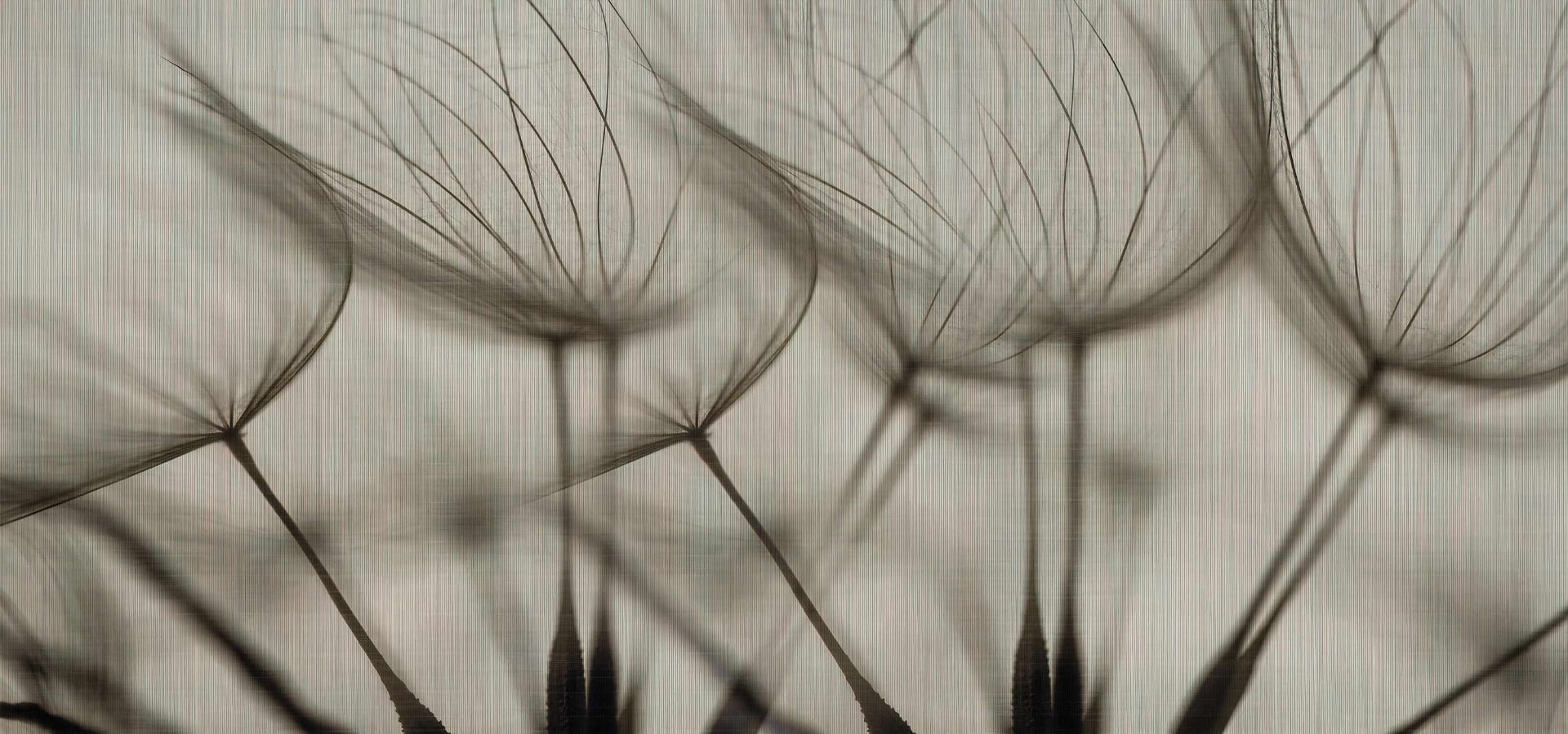 Elegant mural featuring delicate dandelion seeds in motion.