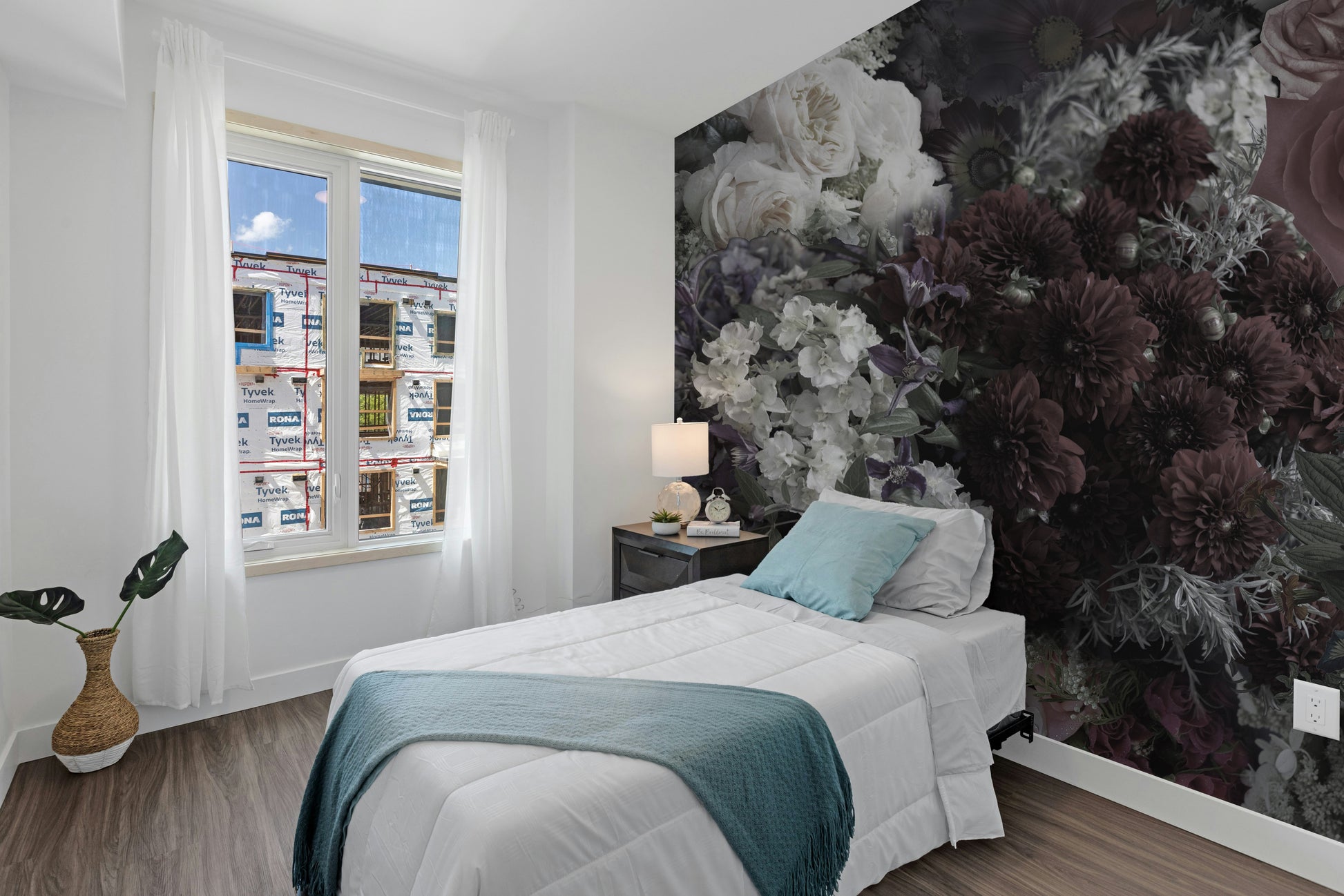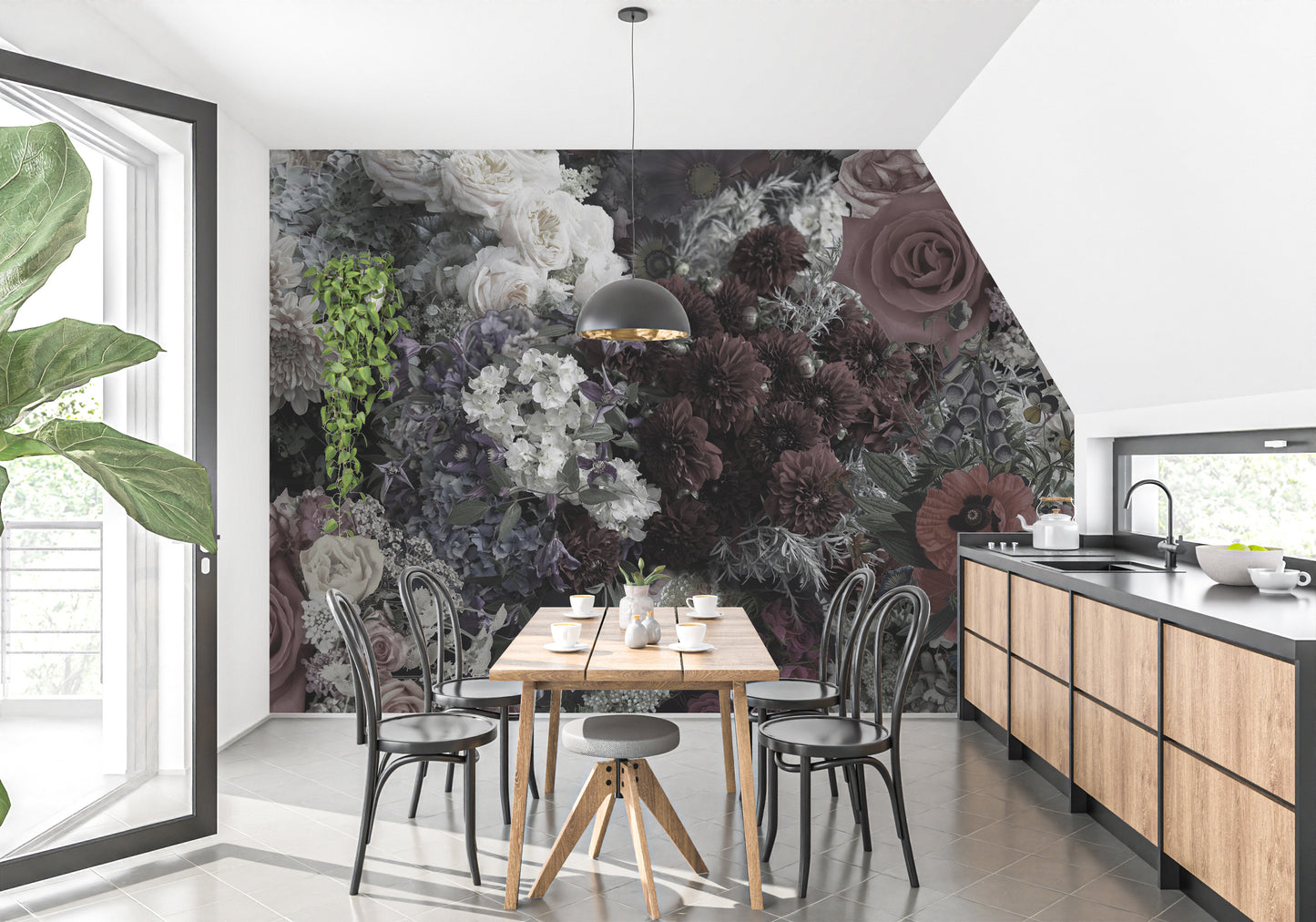 Chic dark floral mural wallpaper with vintage vibes