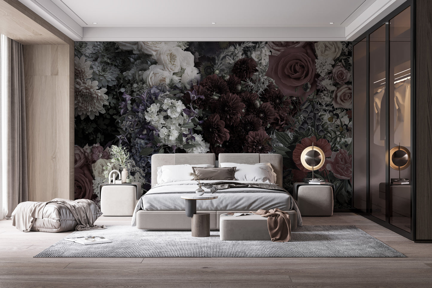 Romantic dark floral wallpaper for bedroom decor ideas