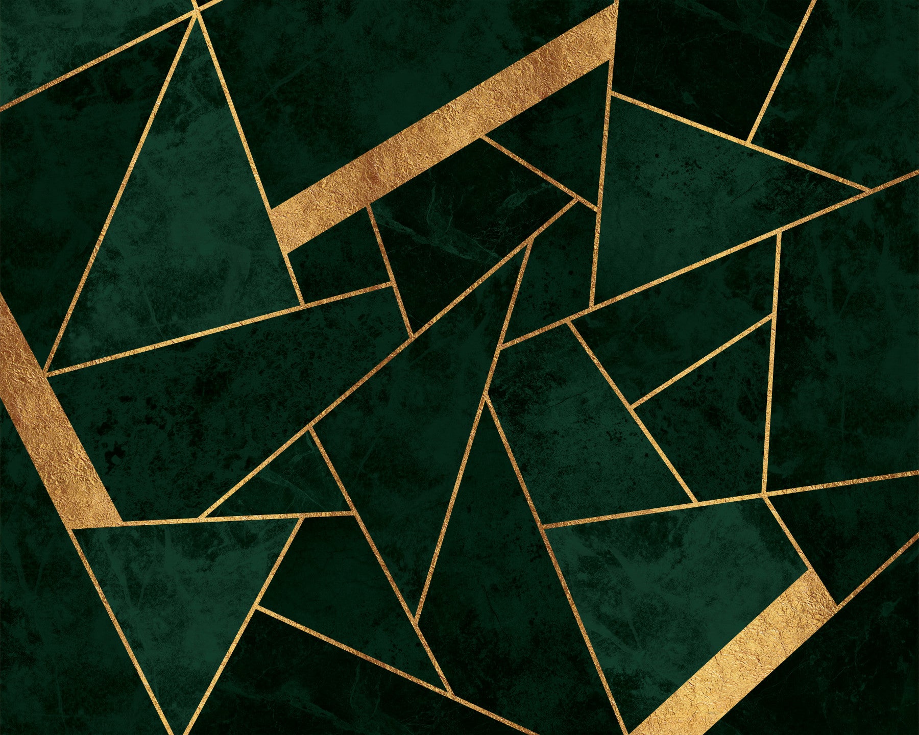 A beautiful dark green emerald wallpaper mural with gold mosaic.