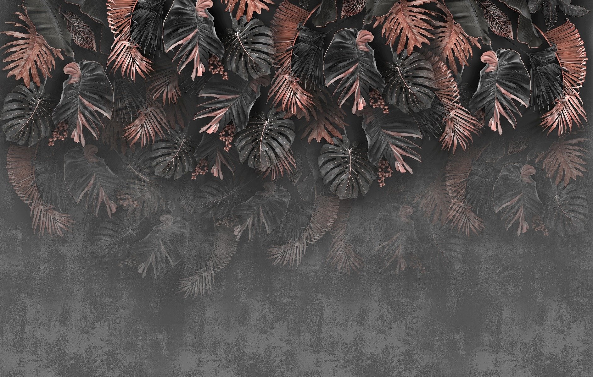 Discover a slice of paradise with our dark-hanging tropical leaves wallpaper mural. This stunning wall covering features a captivating design of large tropical leaves set against a deep, dark backdrop, evoking the mystery and allure of a tropical jungle at dusk.