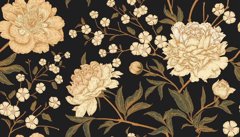 Moody floral wallpaper with lush peonies