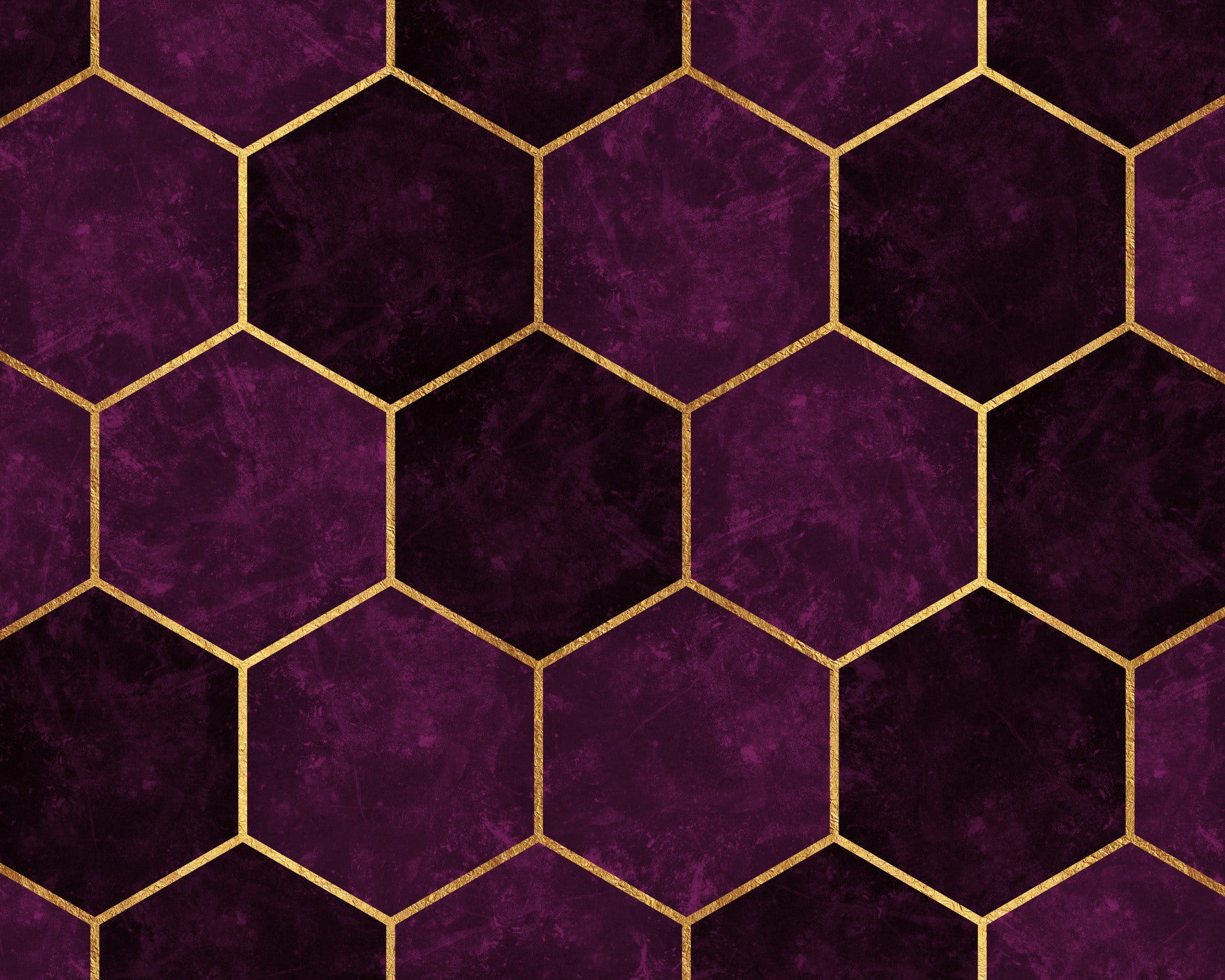 Indulge in the opulent allure of "Dark Plum Luxury Pink Hexagons." This captivating wallpaper showcases a sophisticated geometric pattern of hexagons, each filled with a rich, dark plum hue reminiscent of luxurious velvet. Subtle pink undertones add depth and warmth to the deep purple base, creating a visually stunning contrast. The hexagons are elegantly outlined with shimmering gold, adding a touch of refined glamour and enhancing the luxurious feel. This design is perfect for adding a touch of understated opulence to any modern or classic space, offering a blend of geometric precision and rich, textured beauty.