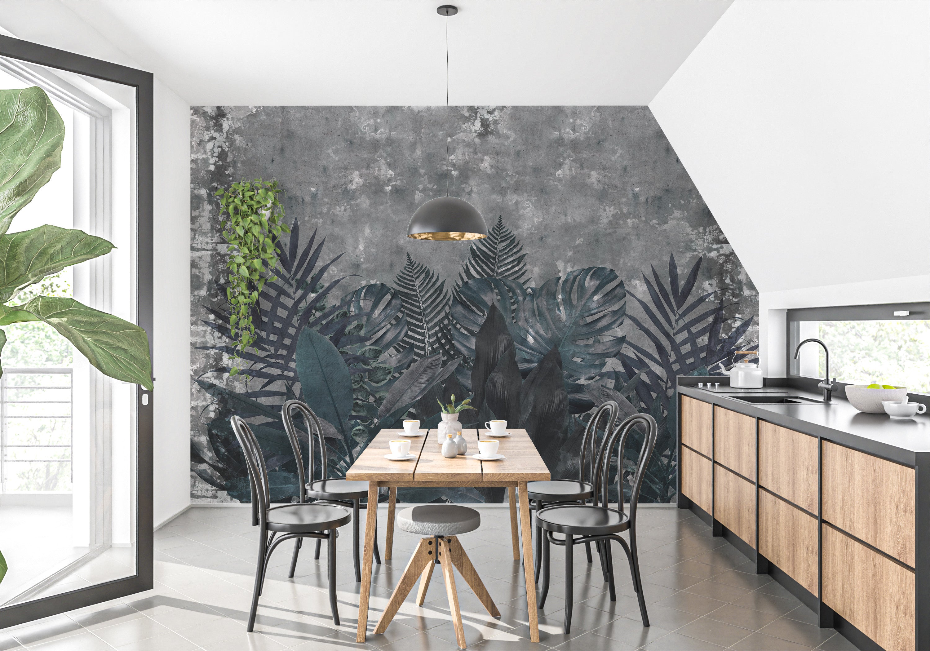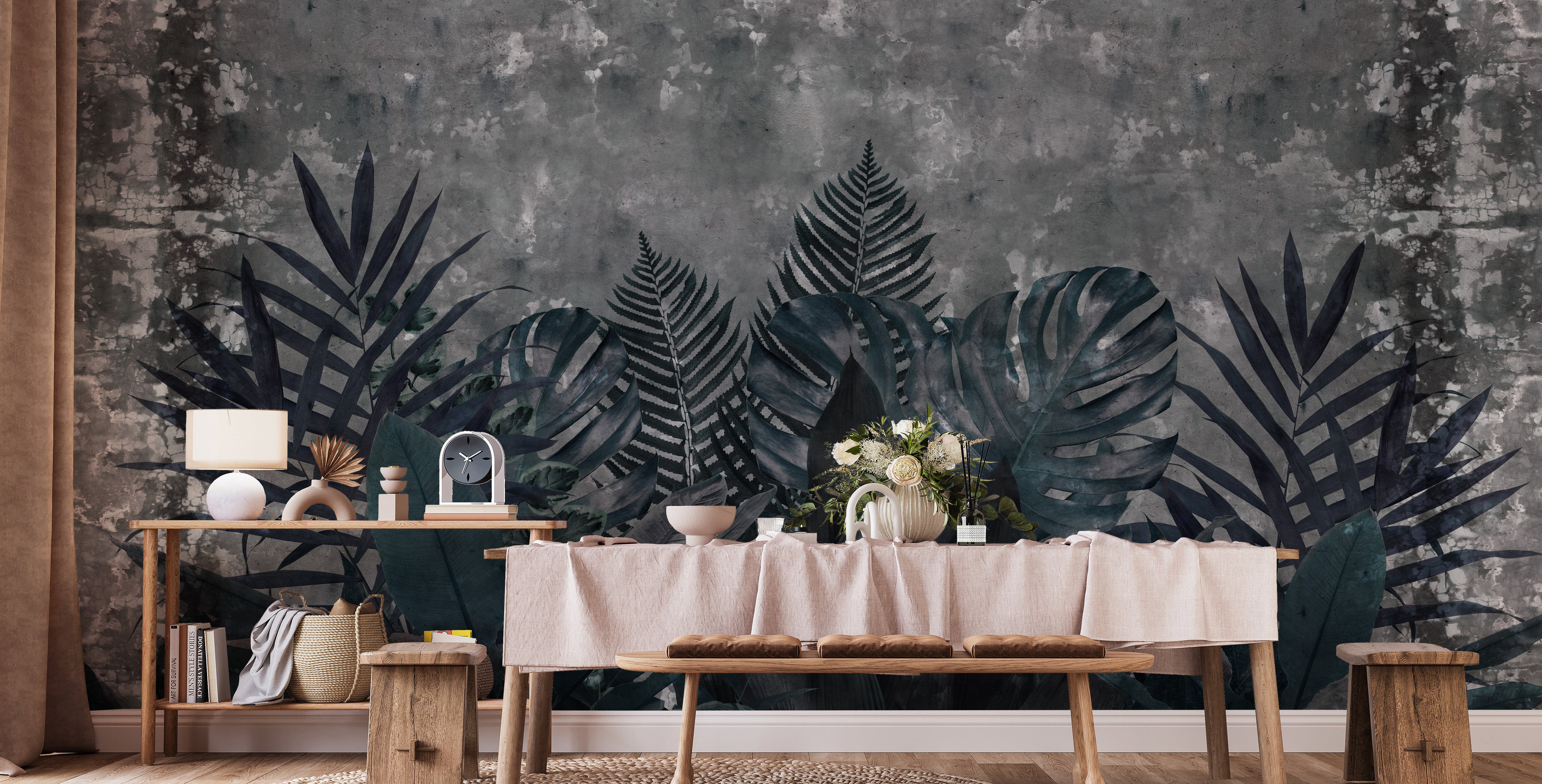 Escape to your dream tropical paradise with the new dark rustic effect of tropical leaves mural wallpaper. The perfect blend of rustic charm and lush greenery, this captivating wallpaper will transport you to an exotic oasis in the comfort of your home Imagine yourself surrounded by towering palm trees, vibrant hibiscus blooms, and the soothing sound of crashing waves. This wallpaper effortlessly captivates the essence of the tropics, creating a truly immersive experience that will leave you feeling rejuvenated and refreshed. Give your home the tropical makeover it deserves, and transform any room into a serene sanctuary with this mesmerizing rustic wallpaper.