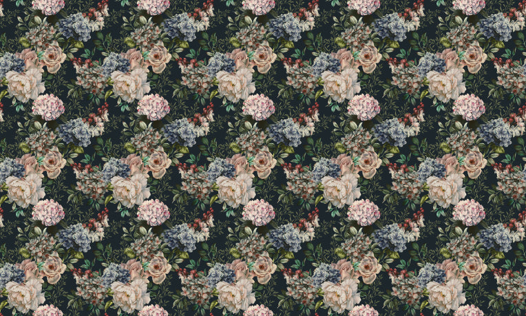 Elevate your living space with our luxurious dark watercolor seamless floral mural wallpaper. Meticulously crafted with rich, moody hues, this wallpaper exudes elegance and sophistication. The intricate floral patterns, painted with a watercolor effect, seamlessly blend into one another, creating a mural-like masterpiece for your walls.