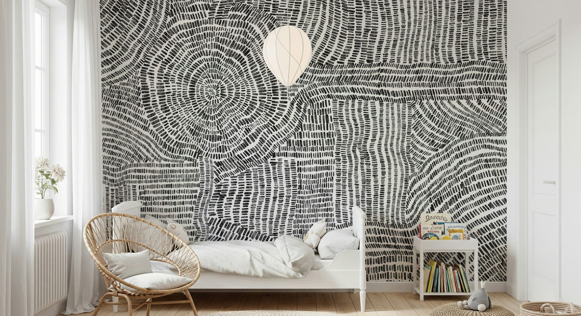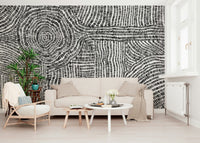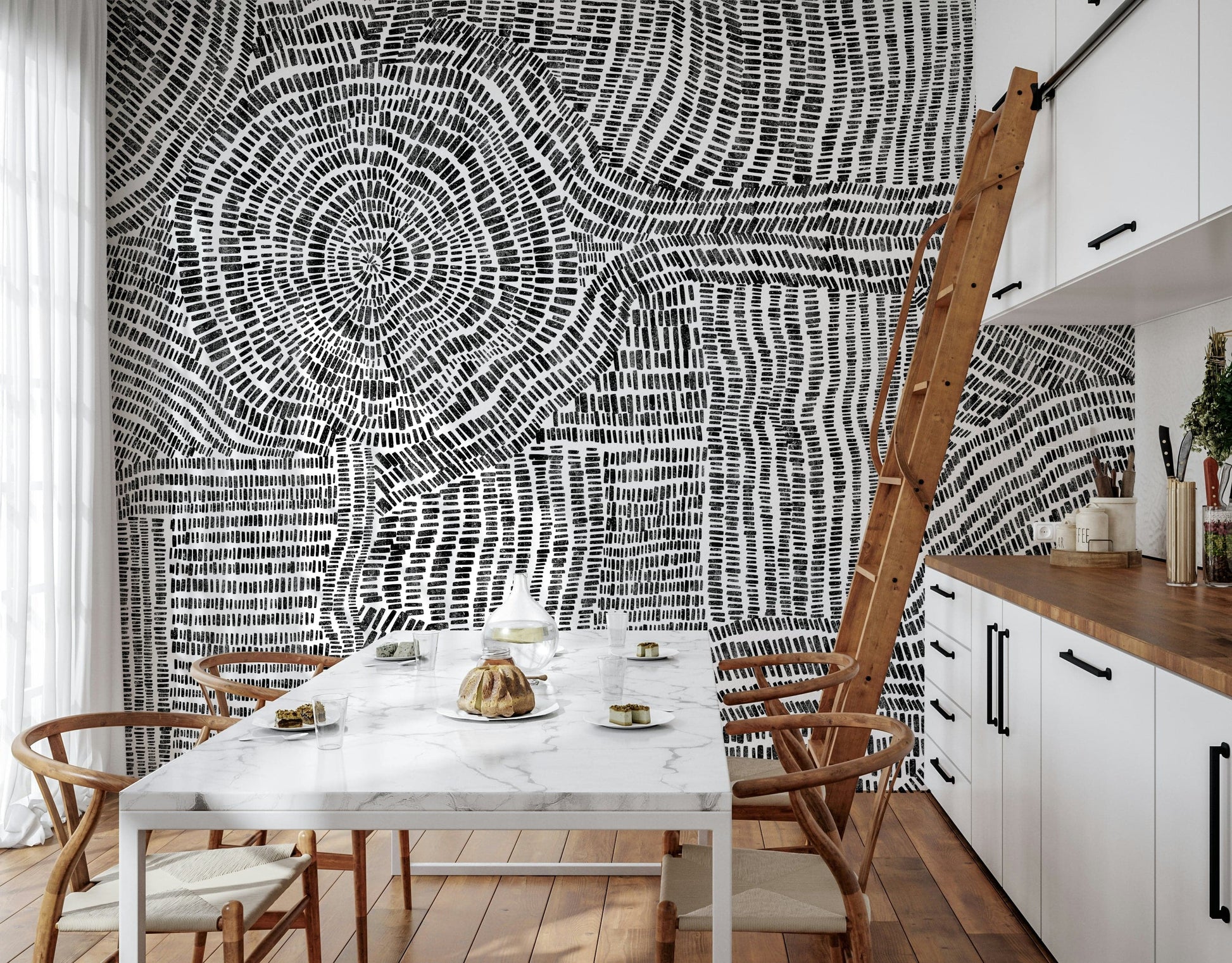 Transform any room with this striking black and white wallpaper for walls. The design features a dynamic arrangement of short dashes and dots, creating a maze-like pattern. This high-contrast, monochrome scheme introduces a bold, artistic statement without overwhelming the space. This wallpaper works exceptionally well in modern living rooms, home offices, or hallways, adding a touch of sophistication and visual interest. The stark contrast enhances natural light, giving a brighter, more open feel. Its geometric rhythm offers an engaging backdrop for artwork, furniture and décor, lending a contemporary flair to your interior.