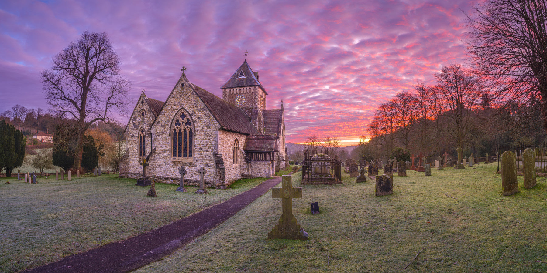 Sunrise over church. Start your day with this inspiring dawn scene. The old church stands as a monument of strength against the backdrop of a breathtaking sunrise. Imagine the vibrant colors adding a warm, welcoming feel to your space. Use this wallpaper for walls to enhance the ambiance of your living room or bedroom. The image brings a touch of classic charm and natural beauty, making it a great choice for those who admire history and serene landscapes. The soft tones and intricate details add depth and character to any room.