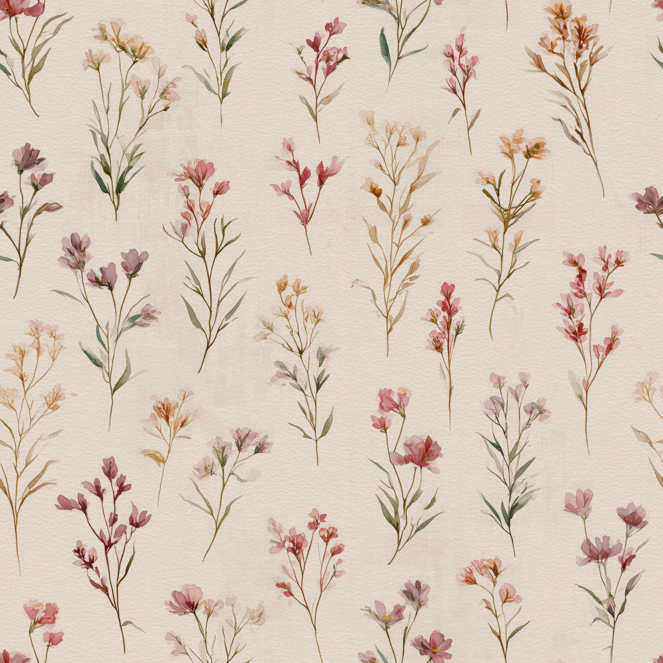 Invite the serene essence of a vintage garden indoors with this captivating floral display. A medley of muted colors swirls across the canvas in a soft-focus effect. Shades of rose, apricot, and lilac intermingle with verdant touches, evoking an antique aesthetic. This wallpaper for walls will transform your bedroom, dining room, or powder room into a haven of tranquility. The delicate brushstrokes blend seamlessly, creating an exquisite backdrop that complements many types of interior designs. Experience a touch of old-world splendor.