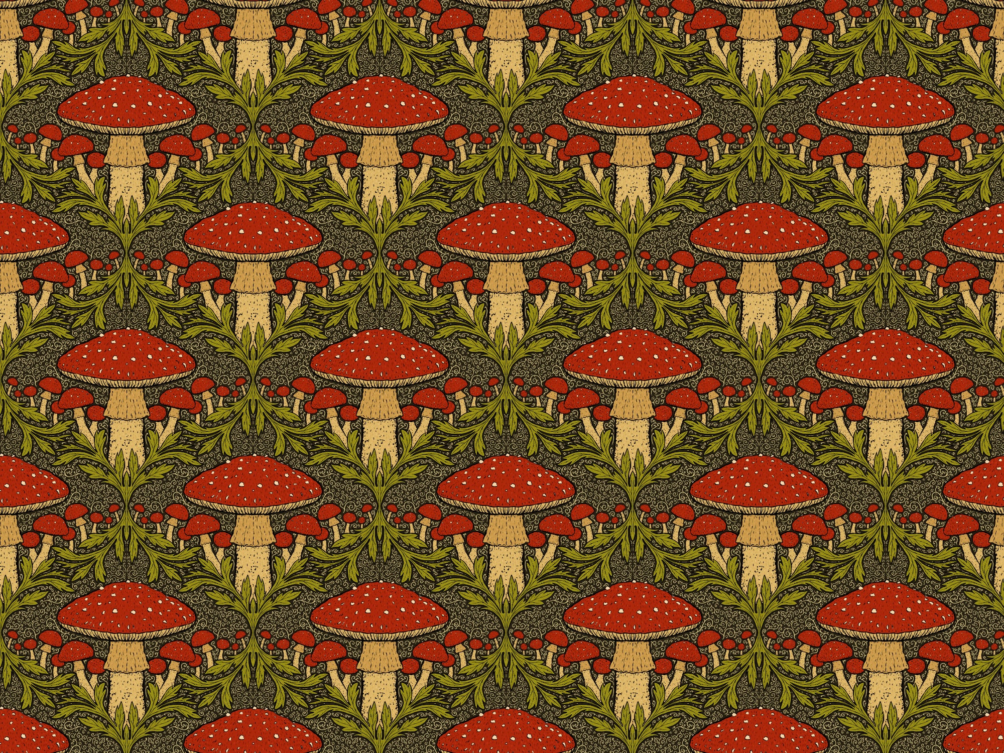 Sophisticated heritage mushroom wallpaper in deep red tones.