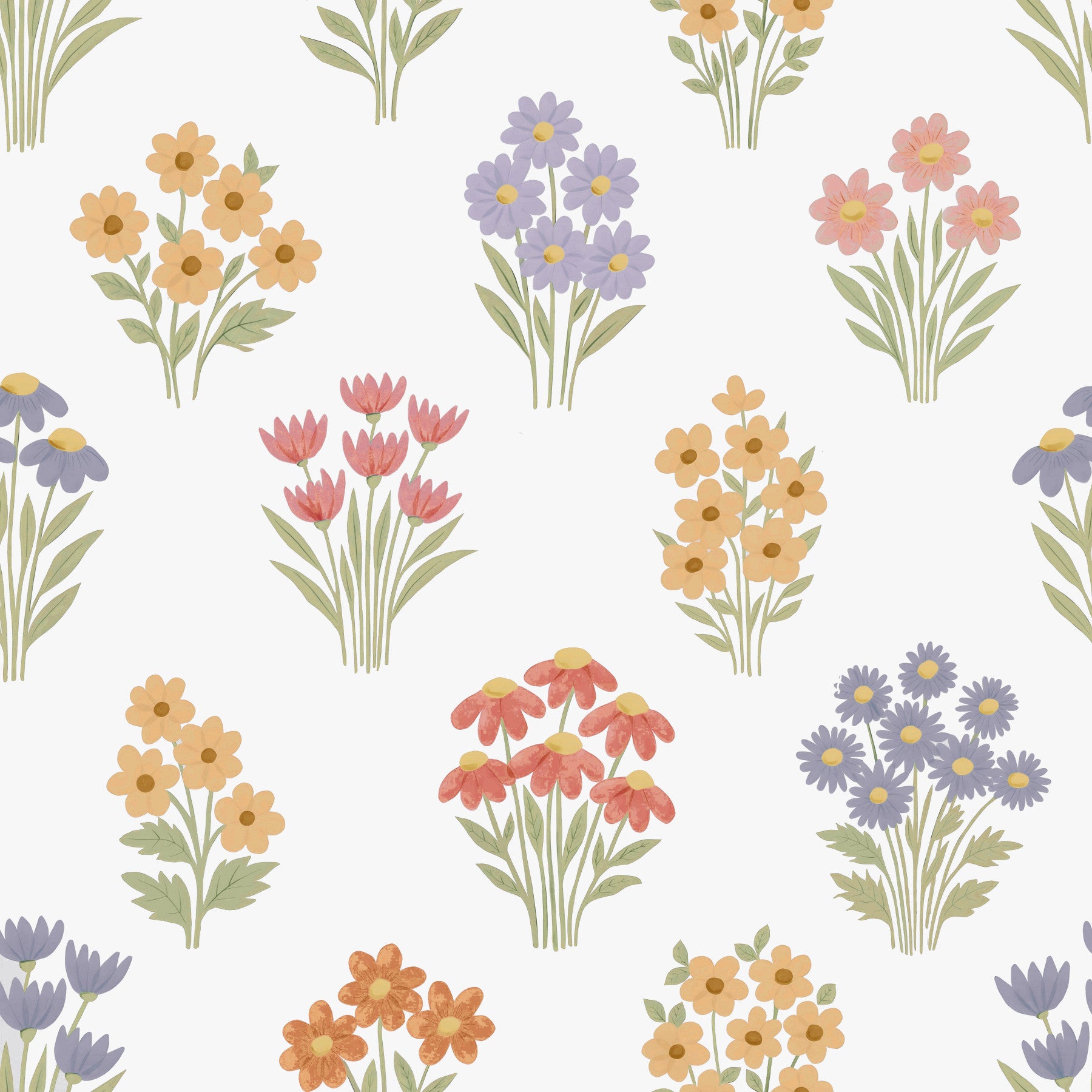 Escape into a serene meadow with our Delicate Hand-Drawn Pastel Floral Meadow Wildflowers wallpaper. This enchanting design features a repeating pattern of charming wildflower bouquets, rendered in soft, soothing pastel hues. Each flower is meticulously hand-drawn, giving the wallpaper a unique and artistic touch. Imagine fields of wildflowers under a gentle morning light; this wallpaper captures that tranquil essence, bringing a sense of calm and natural beauty to your space. Perfect for creating a relaxing atmosphere in bedrooms, living rooms, or any area where you seek a touch of whimsical elegance, this wallpaper will add a subtle yet captivating element to your décor. The delicate color palette ensures that the wallpaper complements a variety of interior styles, from modern minimalist to cozy cottagecore. Immerse yourself in the beauty of nature with this delightful and timeless design.