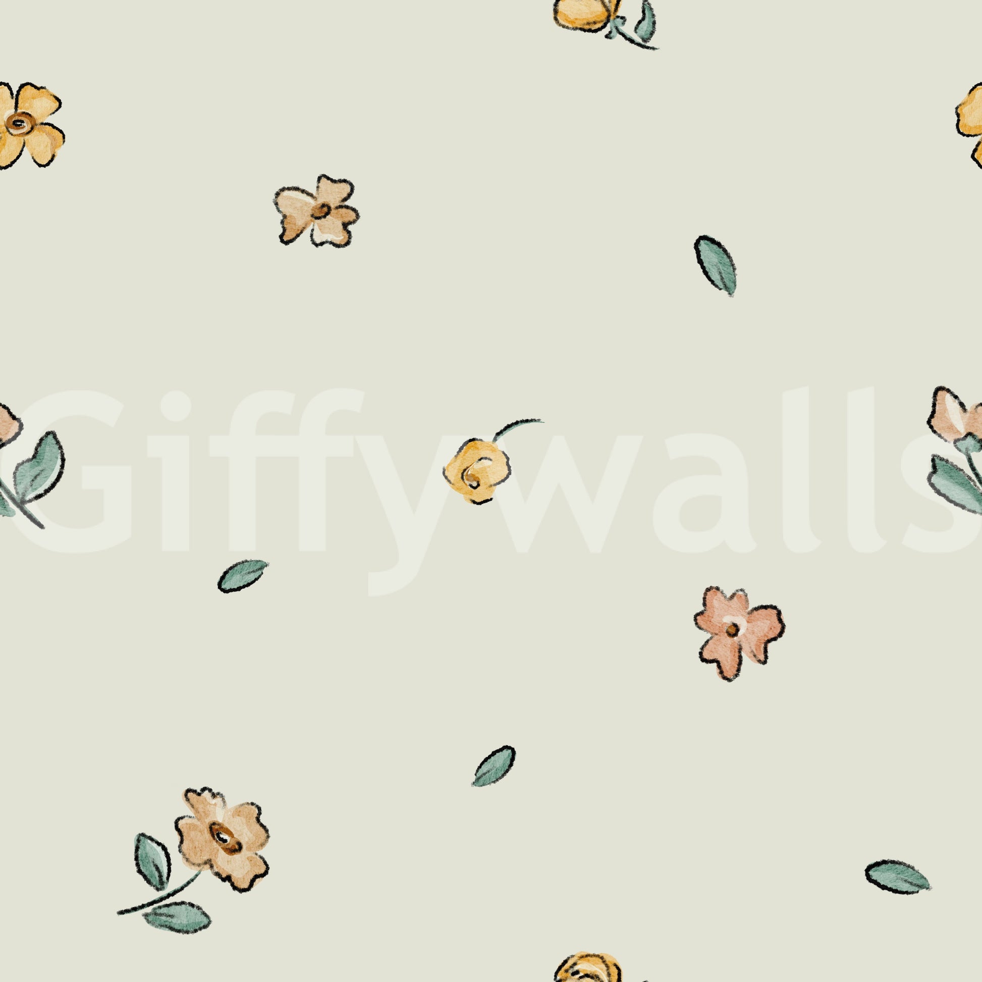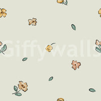 Embrace serenity with this wallpaper featuring a delicate scattering of watercolor florals. Soft peach and golden yellow blossoms, rendered with a gentle hand, are interspersed with muted green leaves against a calming sage green backdrop. The minimalist design creates a tranquil atmosphere, perfect for adding a touch of understated elegance to any digital device. The subtle watercolor effect lends a dreamy, romantic quality, making this wallpaper a soothing and aesthetically pleasing choice for your screen.