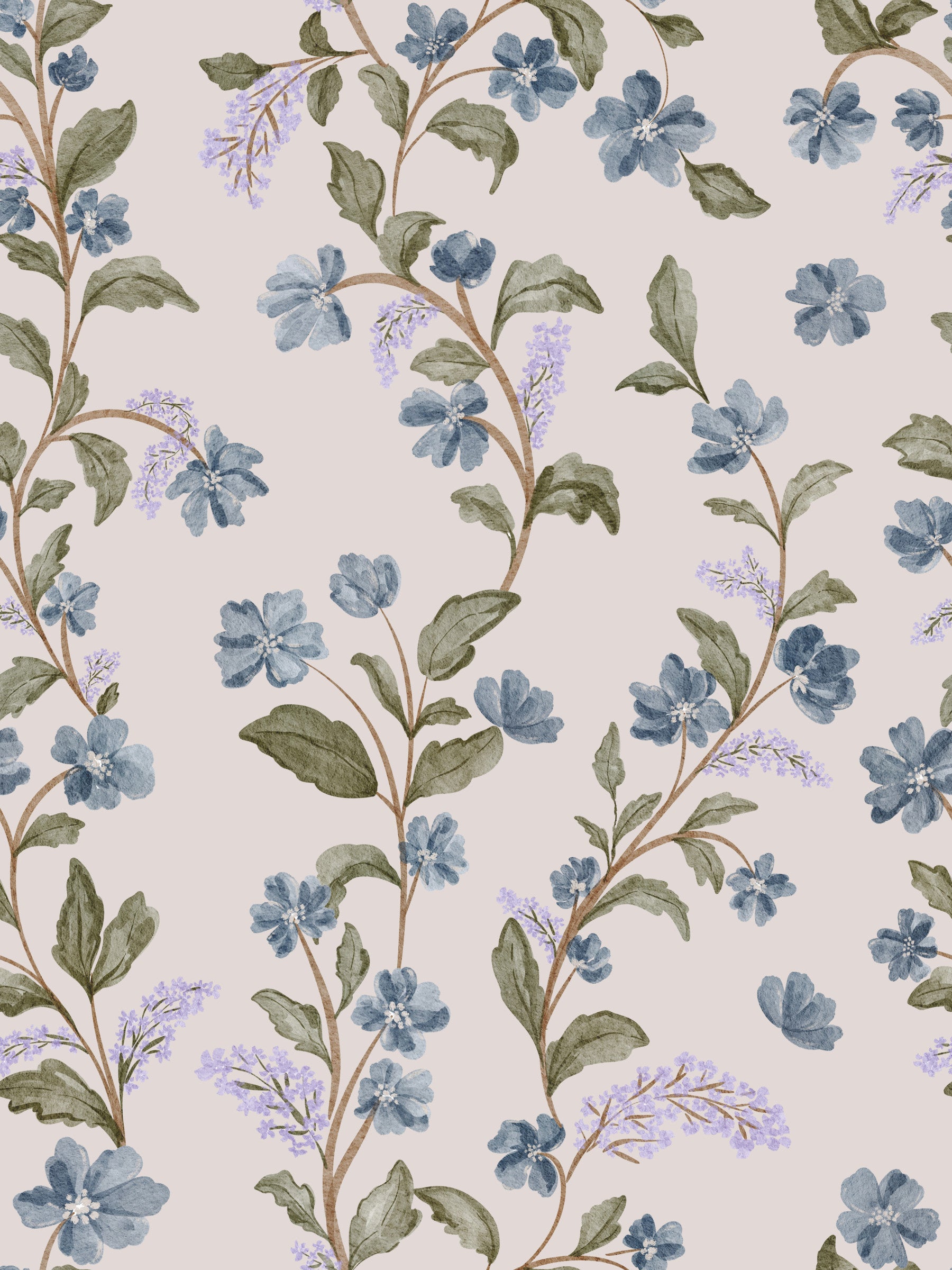 Watercolor blue flowers on Denim Dreams Floral wallpaper.