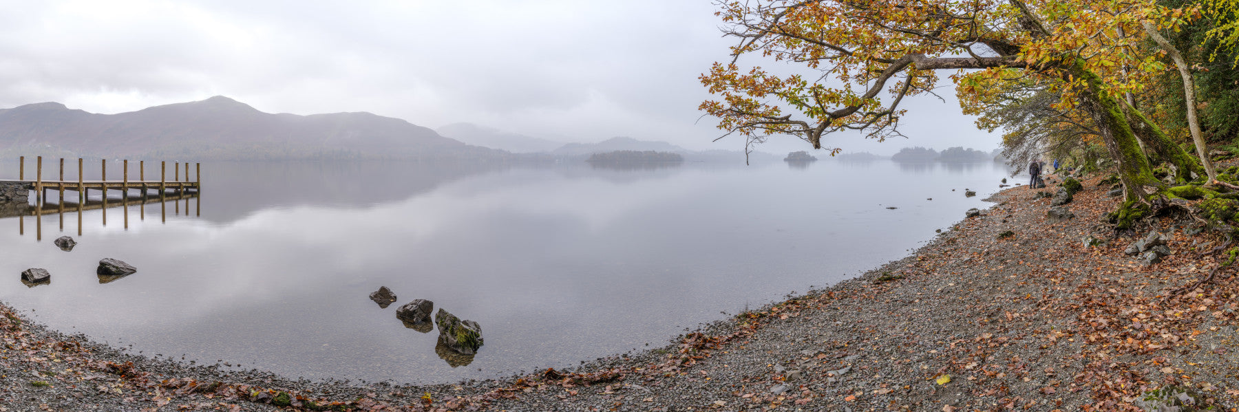 Derwentwater lake mural with autumn trees