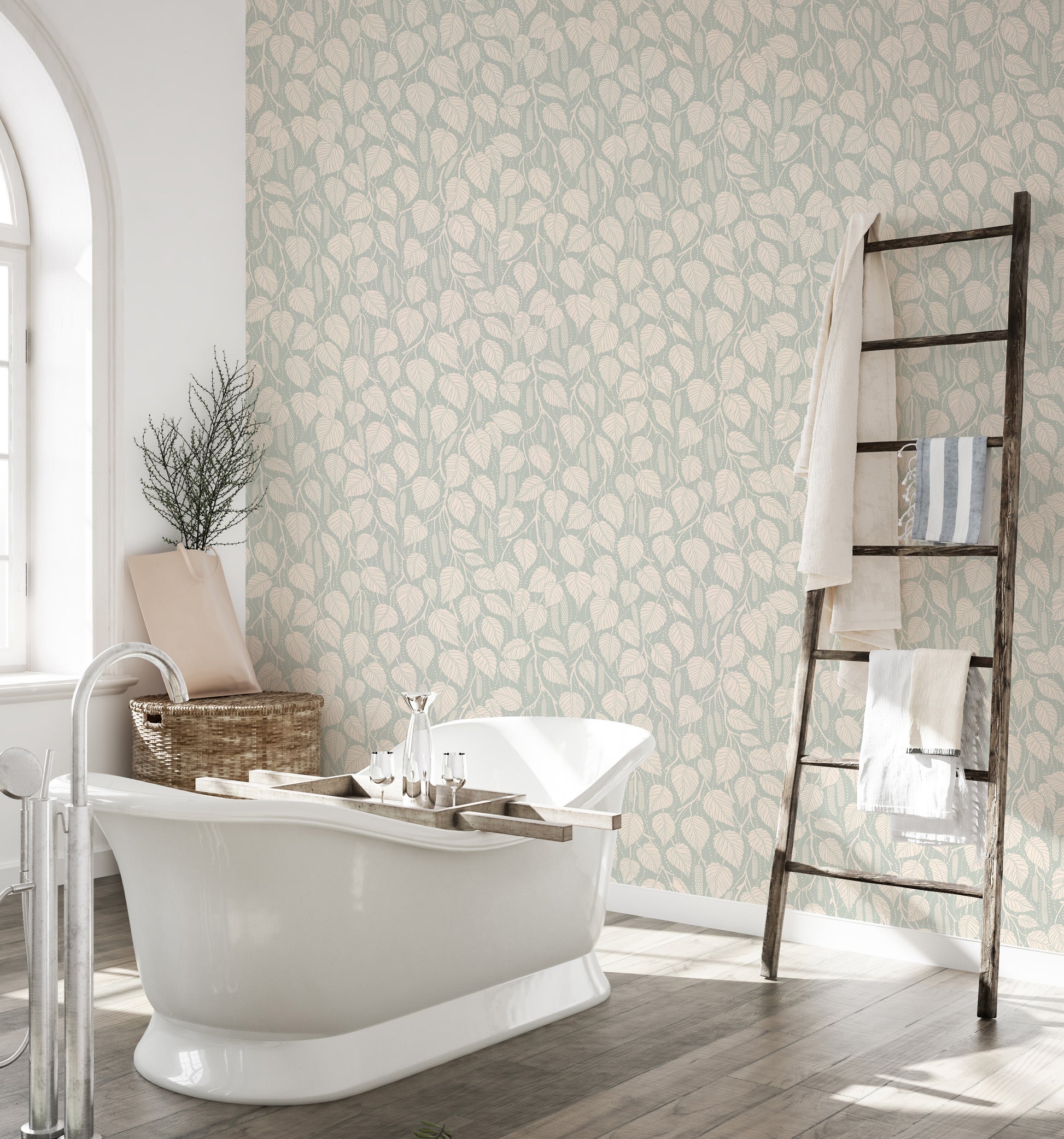 Embrace the serene beauty of nature with this 'Dewy Birch Branches' wallpaper. Intricate, hand-drawn birch leaves and catkins adorn a soft sage green backdrop, creating a calming and elegant design. The delicate detailing of each leaf, enhanced by a subtle dew-like effect, evokes a sense of tranquility and freshness. This wallpaper brings a touch of the forest's peacefulness to any digital screen, offering a sophisticated and nature-inspired aesthetic perfect for desktops, laptops, or tablets. The repeating pattern ensures a harmonious and visually pleasing experience, providing a calming visual escape.