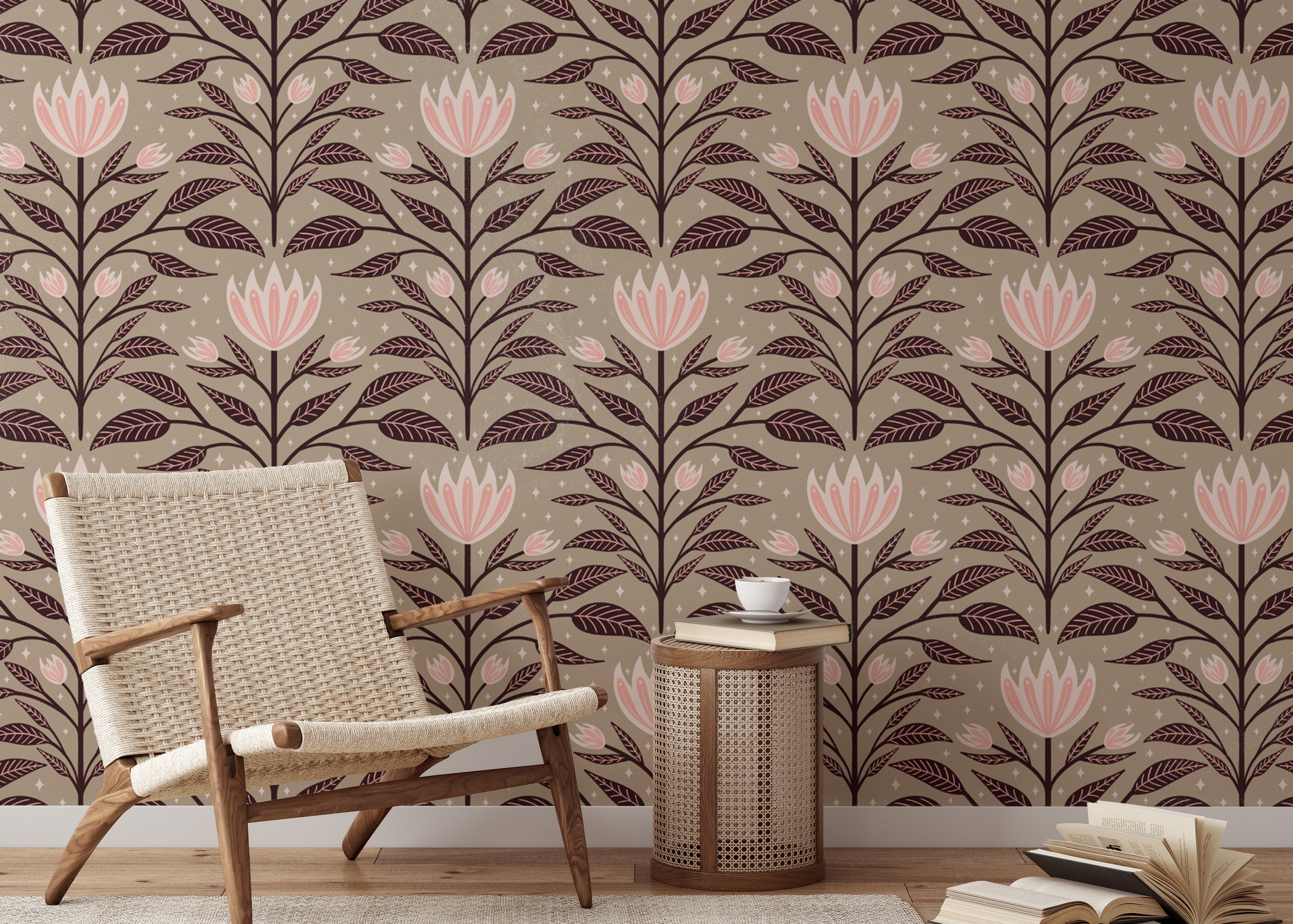 Elegant large wall mural featuring diamond bloom patterns.