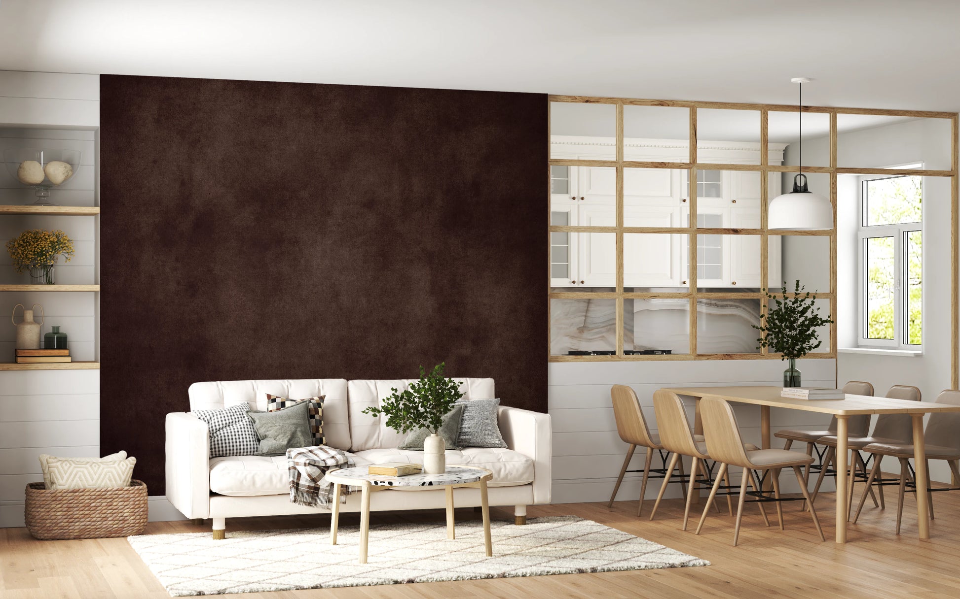 Set a softly atmospheric tone with this subtly distressed Dirty Paper wall mural in Cognac, featuring a richly weathered dark brown paper texture with signs of age, wear, folding and scratches.
