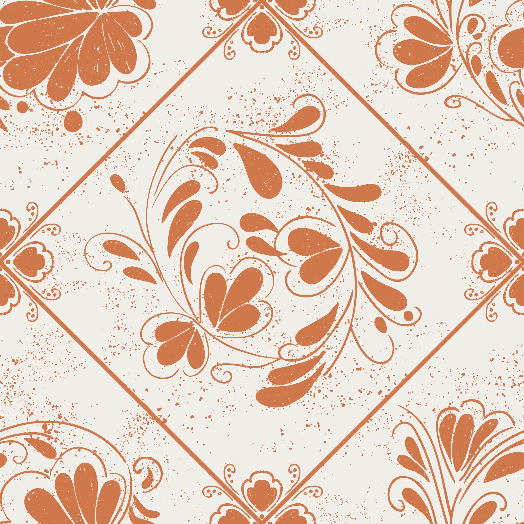 Bring timeless elegance to your home with this sophisticated wallpaper for walls. Featuring a distressed print that gives it an authentic antique appearance, its tile-inspired design showcases terracotta floral motifs against a creamy beige background. This wallpaper adds a touch of classic charm to any interior. The repeating square pattern creates a subtle and visually appealing backdrop for your furniture and decor. The textured appearance adds depth. You can use this in kitchens and dining rooms for a warm, rustic aesthetic. This paper enhances the ambience of your spaces.