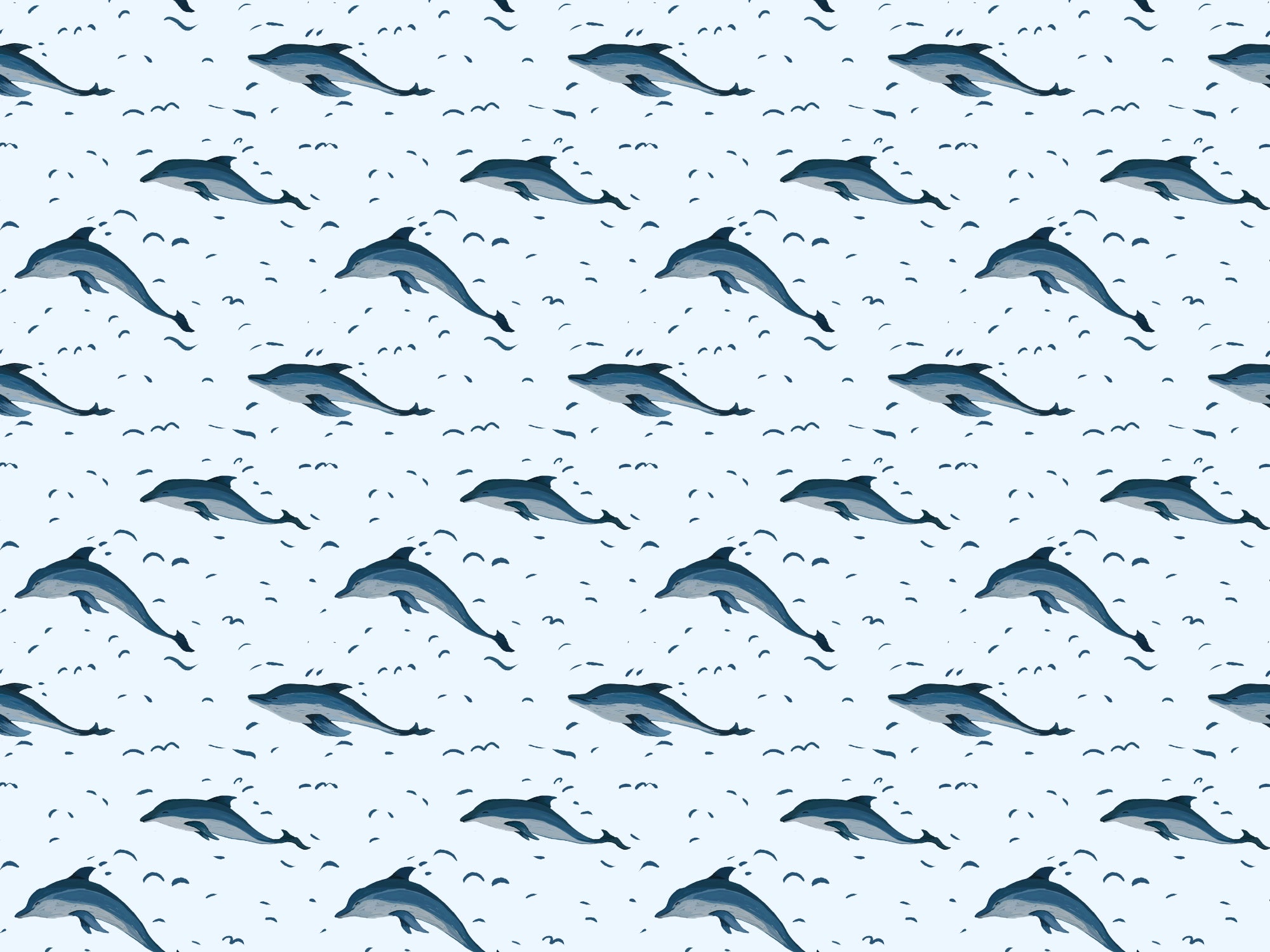 Whimsical dolphins wallpaper for kids’ rooms or nautical themes.