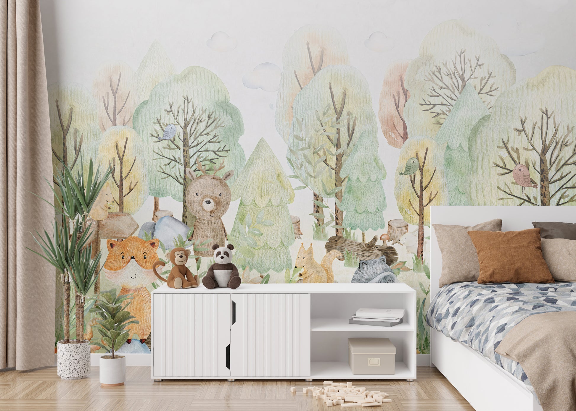 Subtle doodle animals wall mural for kids