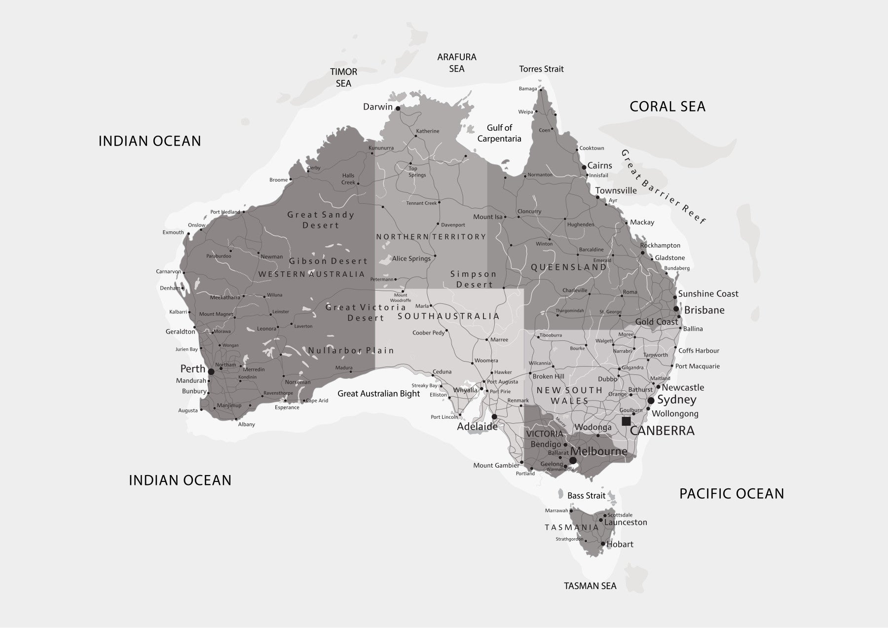 Down Under Map - Grayscale Wall Mural