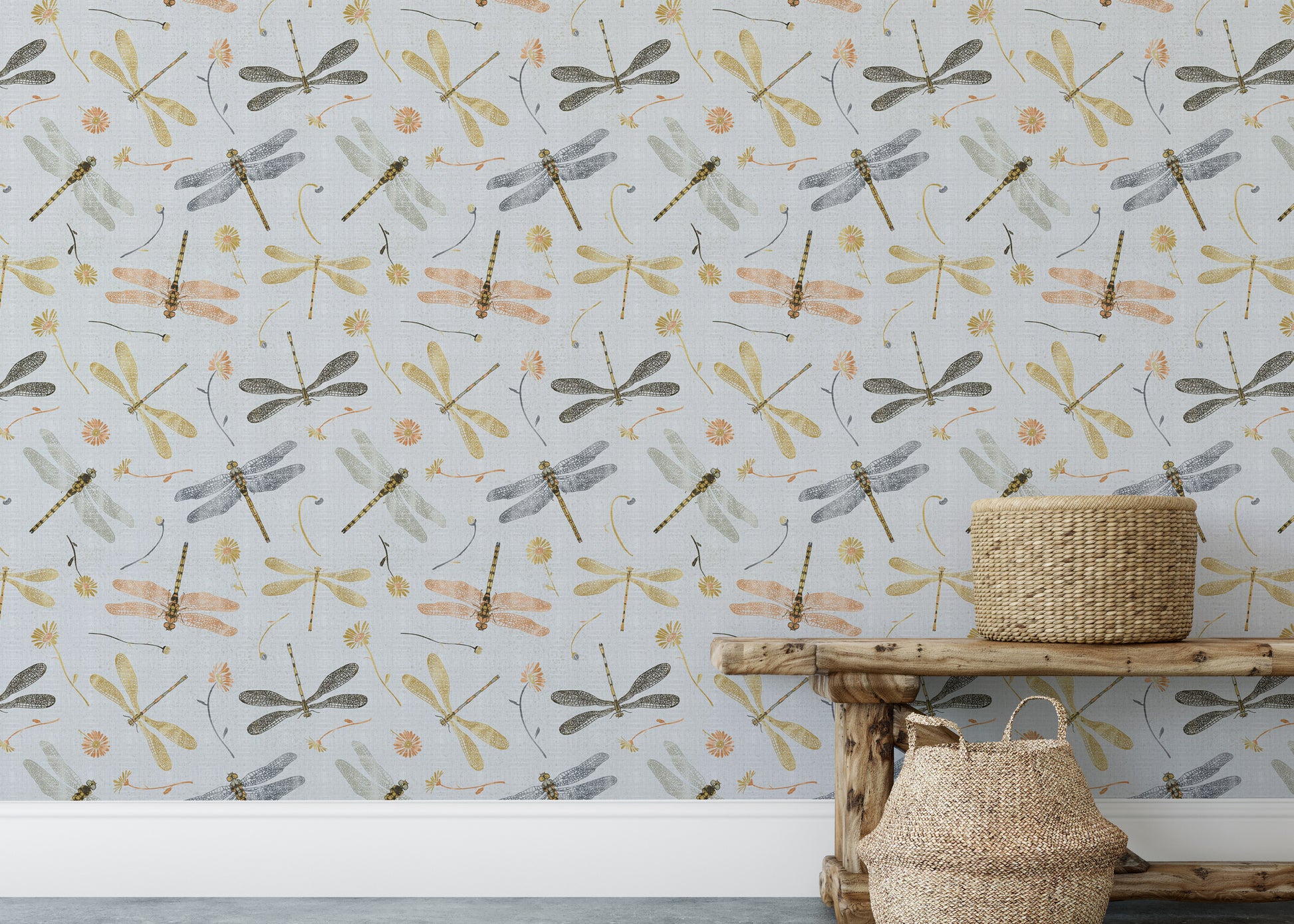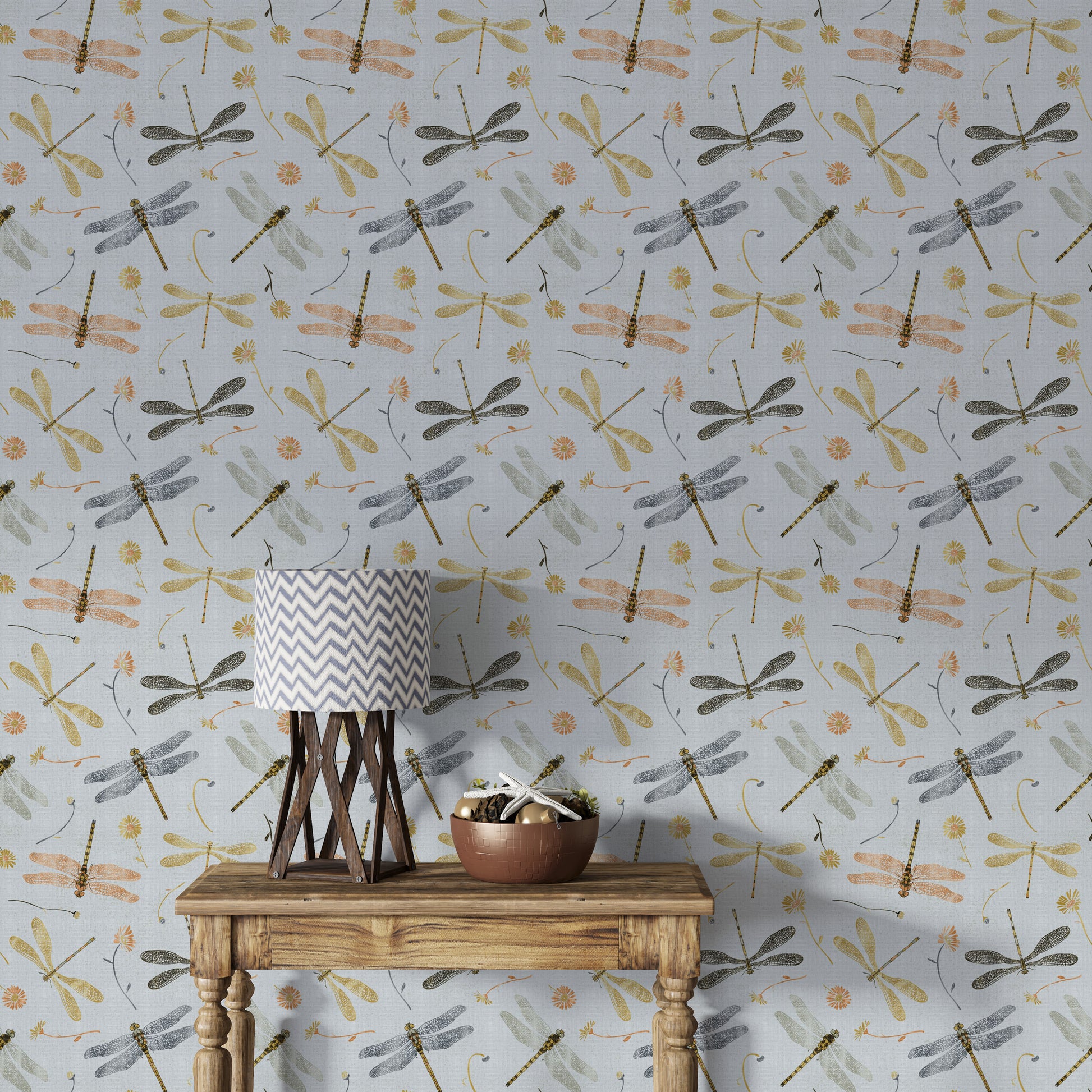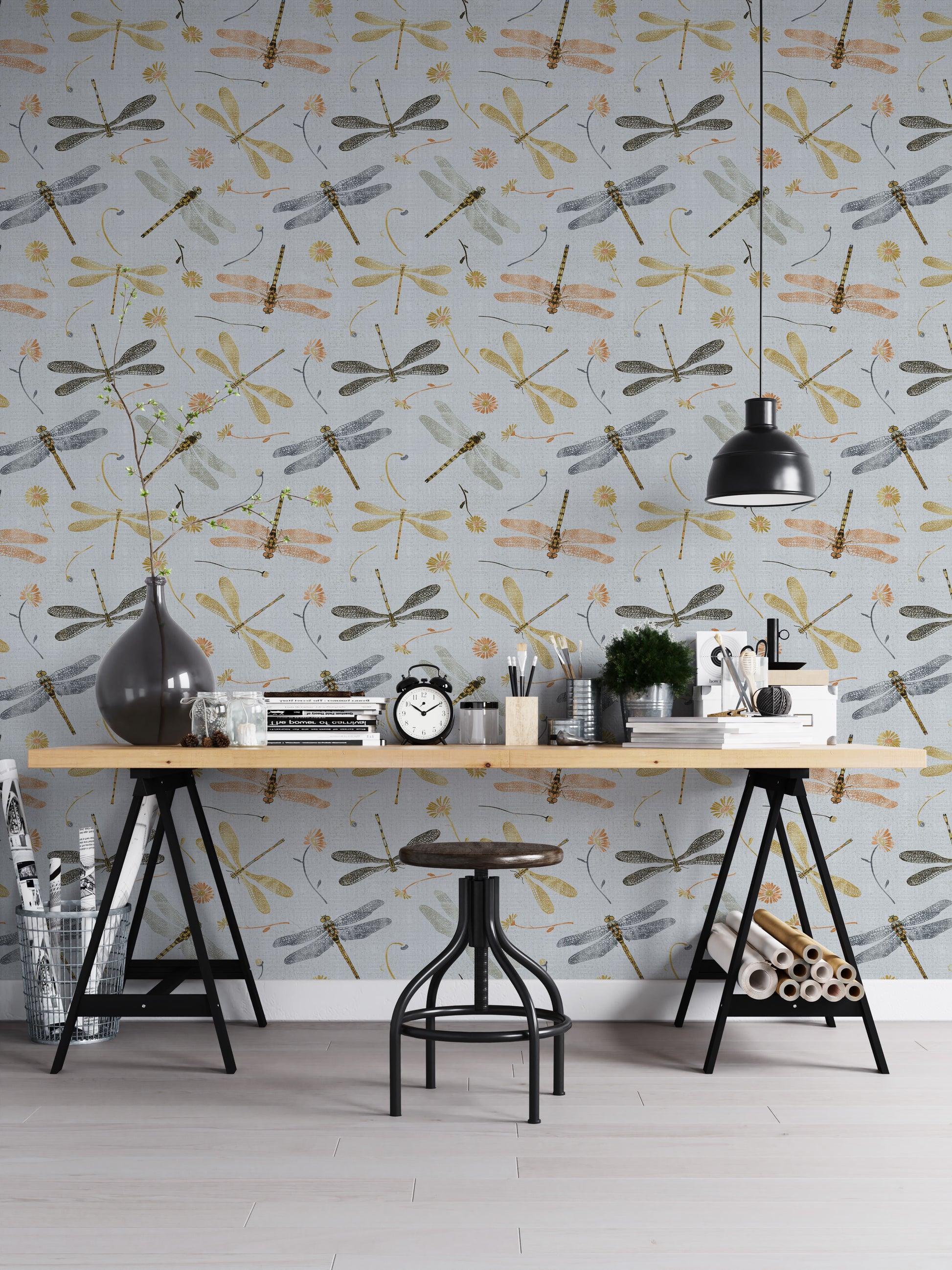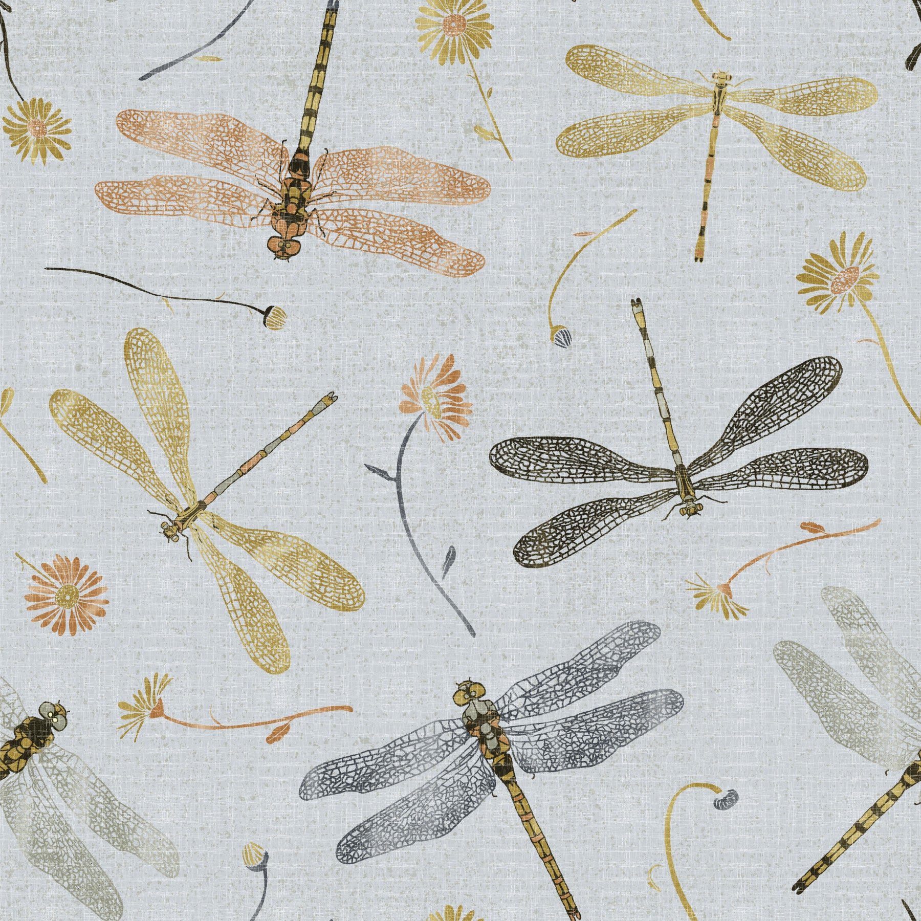 Bring the delicate beauty of nature indoors with our Golden and Gray Dragonfly Wallpaper. Featuring intricately detailed dragonflies and damselflies in soft golden, charcoal, and muted tones, this design adds a serene yet sophisticated touch to any space. The subtle floral accents and linen-textured background create a graceful flow, perfect for bedrooms, living areas, or creative corners. Whether you’re aiming for a whimsical cottagecore vibe or a modern nature-inspired look, this wallpaper offers a timeless charm. Easy to apply and effortlessly stylish, it’s a unique way to infuse your interiors with the quiet elegance of a garden in flight.